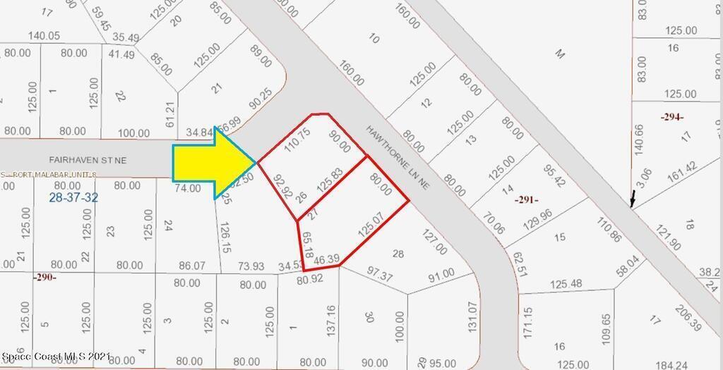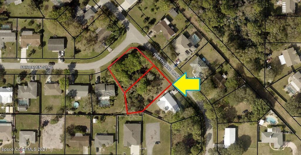Two side-by-side adjacent lots available in Port Malabar Unit 8 of Palm Bay. Located in the northeast section, this 0.52 acre buildable residential double lot is on a corner, has city water available, and is just .6 miles - 4 minutes to the Publix Supermarket, 2,7 miles - 6 minutes to Lockmar Elementary School, 9.9 miles - 22 minutes to Melbourne Airport, and 13.4 miles - 26 minutes to the beaches of Indialantic. From exit #173 of I-95 go west on Malabar Road for .5 miles, right on Eureka Avenue for .1 mile, left on Crocus Street for .2 miles, and right on Hawthorne Lane. The lot will be on your left.