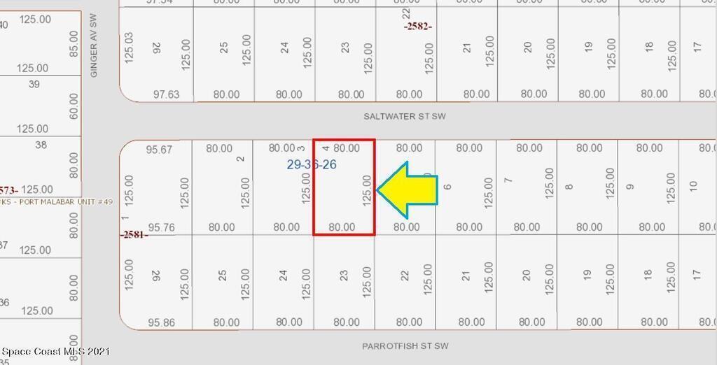 One of 2 side-by-side adjacent lots available in Port Malabar Unit 49 of Palm Bay (the other is 866 Saltwater). Located in the southwest section, this 0.23 acre buildable residential lot is just 2.1 miles - 5 minutes to Westside Elementary School, 4 miles - 9 minutes to the Publix Supermarket, 15.7 miles - 33 minutes to Melbourne Airport, and 21.2 miles - 38 minutes to the beaches of Indialantic. From exit #176 of I-95 go west on Palm Bay Road for .7 miles, left on Minton Road for 3.3 miles, right on Jupiter Boulevard for .1 mile, left on DeGroodt Road for 3.3 miles, right on Osmosis Drive for 1.0 mile, left on Madden Avenue for .5 miles, and right on Saltwater Street. The lot will be on your left.