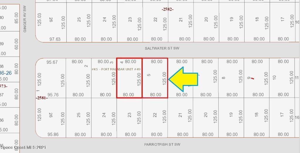 2 side-by-side adjacent lots available in Port Malabar Unit 49 of Palm Bay. Located in the southwest section, this 0.46 acre buildable residential double lot is just 2.1 miles - 5 minutes to Westside Elementary School, 4 miles - 9 minutes to the Publix Supermarket, 15.7 miles - 33 minutes to Melbourne Airport, and 21.2 miles - 38 minutes to the beaches of Indialantic. From exit #176 of I-95 go west on Palm Bay Road for .7 miles, left on Minton Road for 3.3 miles, right on Jupiter Boulevard for .1 mile, left on DeGroodt Road for 3.3 miles, right on Osmosis Drive for 1.0 mile, left on Madden Avenue for .5 miles, and right on Saltwater Street. The lot will be on your left.