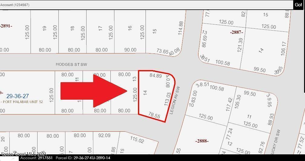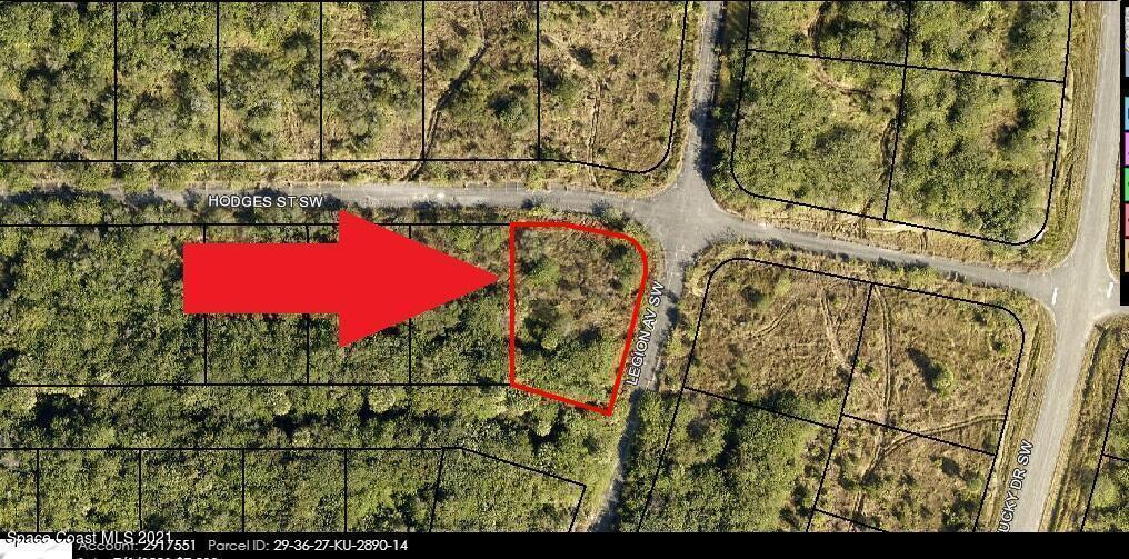 Oversized 0.27 acre corner lot available in Port Malabar Unit #52 of Palm Bay. This lot is located near the famous Compound area of the rural SW Section. There is no utilities present to the lot and the area; and the lot is not buildable now or the foreseeable future. This is for investment purposes only. From Exit #176 of I-95 go west on Palm Bay Road NE. Turn right on Minton Road and proceed south for 3.3 miles. Turn right on Jupiter Boulevard SW and Left on DeGroodt Road Sw. Proceed south for 2.5 miles and turn right on J.A. Bombardier Boulevard. Proceed west for 2.7 miles and turn left on Kentucky Drive. Proceed 0.5 miles and turn right on Hodges Street SW to the corner lot.