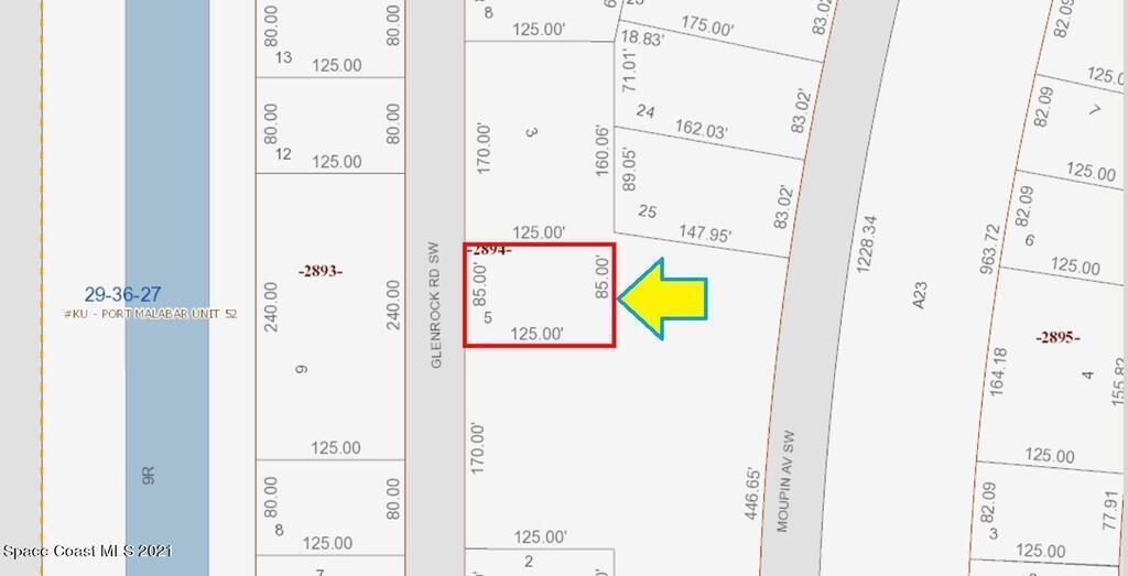 0.24 acre residential investment property for sale in Port Malabar Unit #52 of Palm Bay. Located in the southwest section, the lot does have road access but no utilities. The City of Palm Bay does not have any plans of placing utilities to this lot or area; so the lot is not build-able at the present time. The seller has no known knowledge of the property and makes no representations except for title. From exit #176 of I-95 go west on Palm Bay Road for .7 miles, left on Minton Road for 3.3 miles, right on Jupiter Blvd. for .1 mile, left on DeGroodt Road for 2.5 miles, right on JA Bombardier Blvd. for 2.7 miles, left on Kentucky Dr for .9 miles, right on Montecito St for .2 miles, and right on Glenrock Road. The lot will be on your right.