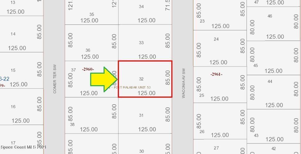 0.24 acre residential investment property for sale in Port Malabar Unit #53 of Palm Bay. Located in the southwest section, the lot does have road access but no utilities. The City of Palm Bay does not have any plans of placing utilities to this lot or area; so the lot is not build-able at the present time. The seller has no known knowledge of the property and makes no representations except for title. From exit #176 of I-95 go west on Palm Bay Road for .7 miles, left on Minton Road for 3.3 miles, right on Jupiter Blvd. for .1 mile, left on DeGroodt Rd. for 2.5 miles, right on JA Bombardier Blvd. for 2.6 miles, right on Carter, continue on Baffle, right on Blanton, right on Cedar, right on Waconia. The lot will be on your right.