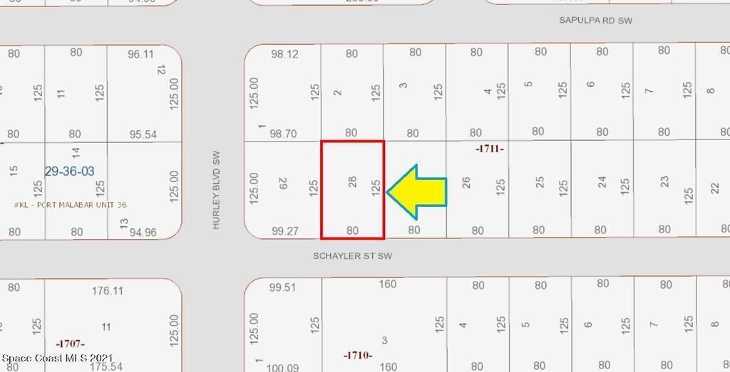 0.23 acre buildable residential lot available in Port Malabar Unit 36 of Palm Bay. Located in the southwest section, this lot is just 1.2 miles - 4 minutes to Jupiter Elementary School, 2.5 miles - 6 minutes to the Winn Dixie Supermarket, 12.4 miles - 27 minutes to Melbourne Airport, and 15 miles - 33 minutes to the beaches of Indialantic. From exit#176 of I-95 go west on Palm Bay Road for .7 miles, left on Minton Road for 2.5 miles, right on Malabar Road for 2.2 miles, left on Hurley Boulevard for .4 miles, and left on Schayler Street. The lot will be on your left.