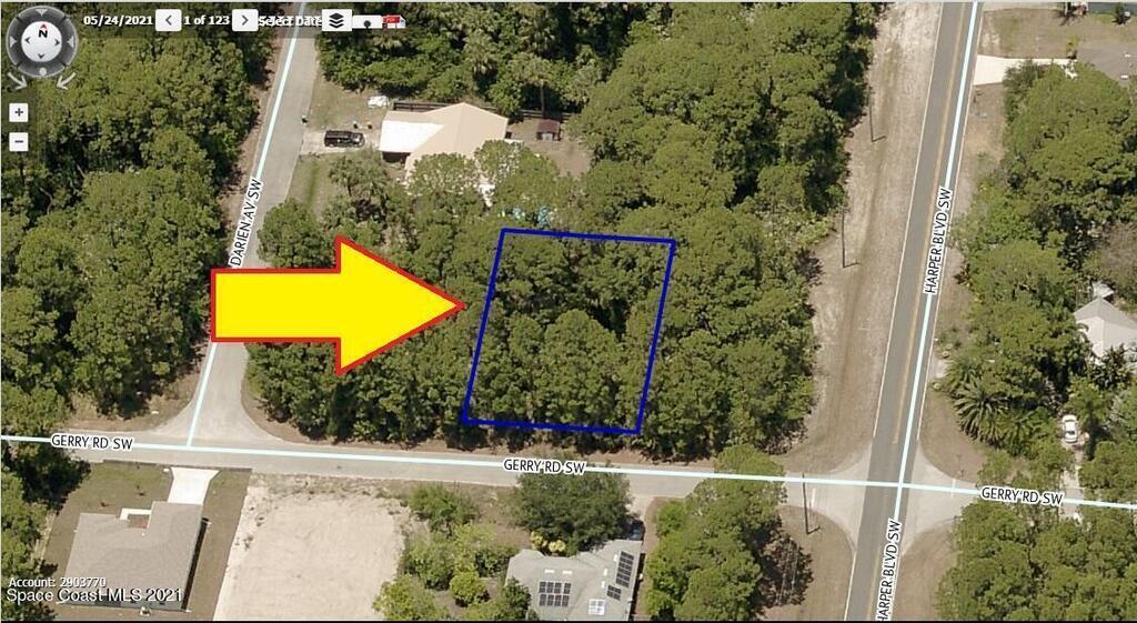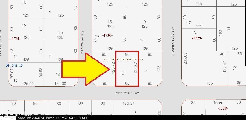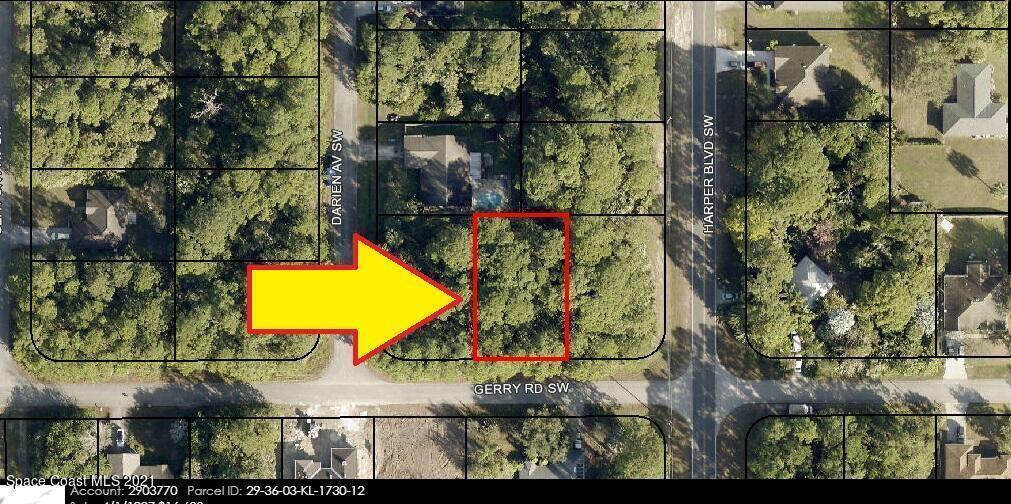0.23 acre buildable single family residential lot available in Port Malabar Unit #36 of Palm Bay. Nicely located in the SW Section 1 lot from the corner, this lot is just 5.4 miles -12 minutes- to Publix Shopping, 4.2 miles -9 minutes- to Bayside High and Westside Elementary Schools, 10.1 miles -22 minutes- to the Melbourne Square Mall, and just 15.5 miles -35 minutes- to the beaches in Indialantic. From Exit #176 of I-95 go west on Palm Bay Road NE. turn left on Minton Road and proceed 2.5 miles. Turn right on Malabar Road and proceed west for 2.2 miles. Turn left on Hurley Boulevard SW, Left on Harper Boulevard SW and right on Gerry Road SW. The lot is on the right.