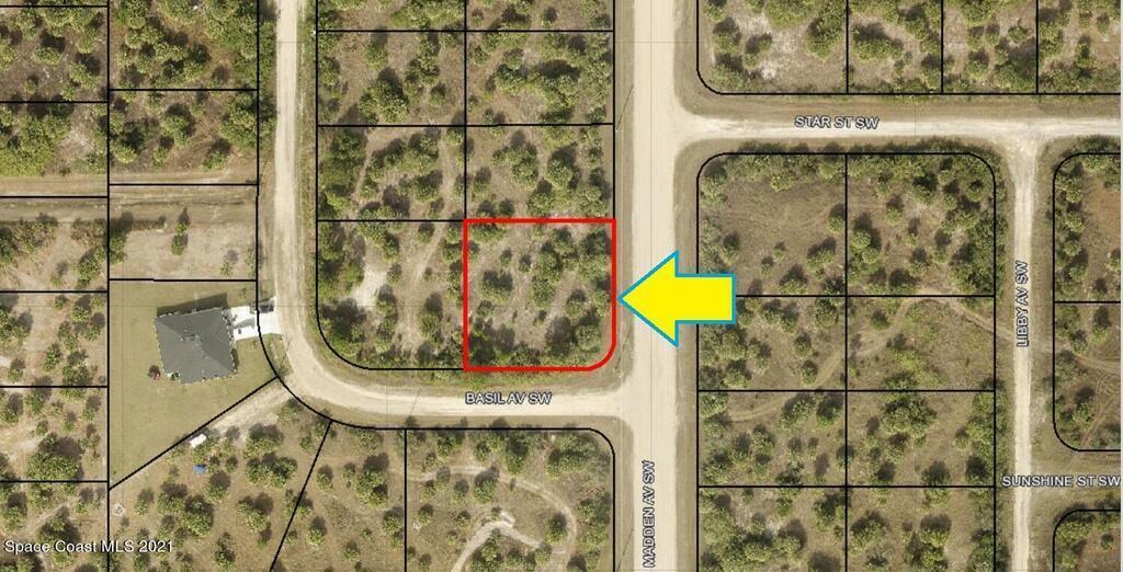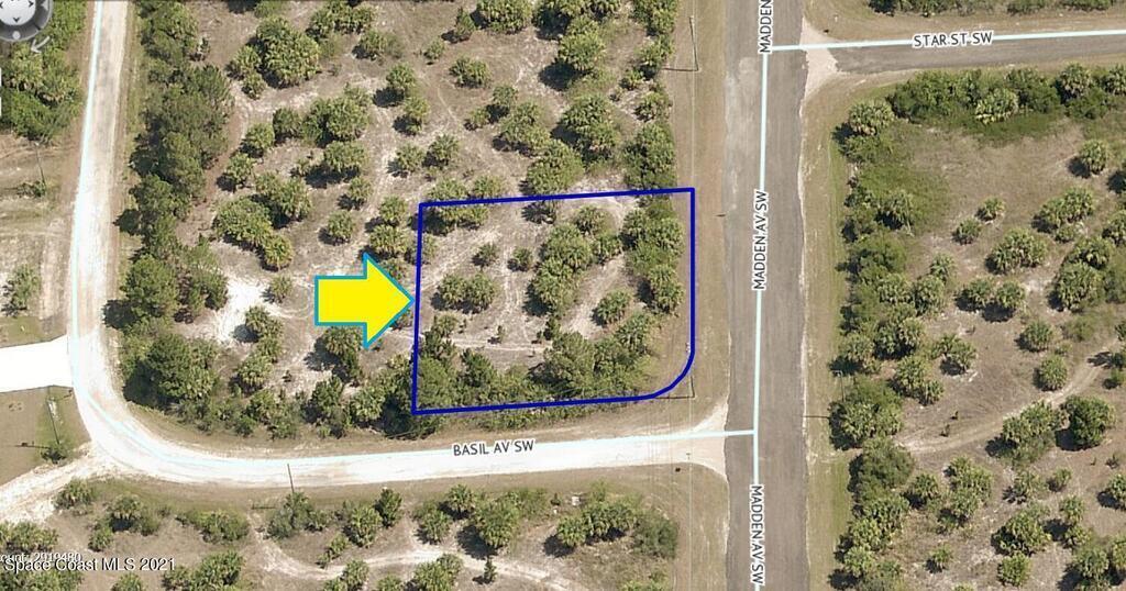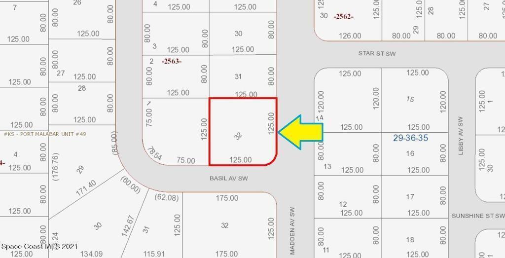 Oversized 0.34 acre buildable residential Corner lot available in Port Malabar Unit 49 of Palm Bay. Located in the southwest section, this lot is just 2.7 miles - 7 minutes to Westside Elementary School, 5.3 miles - 10 minutes to the Publix Supermarket, 16.5 miles - 33 minutes to Melbourne Airport, and 21.3 miles - 35 minutes to the beaches of Indialantic. From exit #173 of I-95 go west on Malabar Road for .2 miles, left on San Filippo Drive SE for 7.5 miles, left on St Andre Boulevard for 1.2 miles, and right on Madden Avenue. The lot will be on your left on the northwest corner with Basil Avenue.