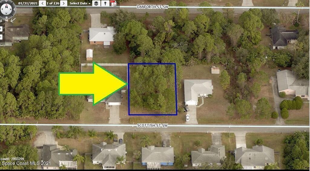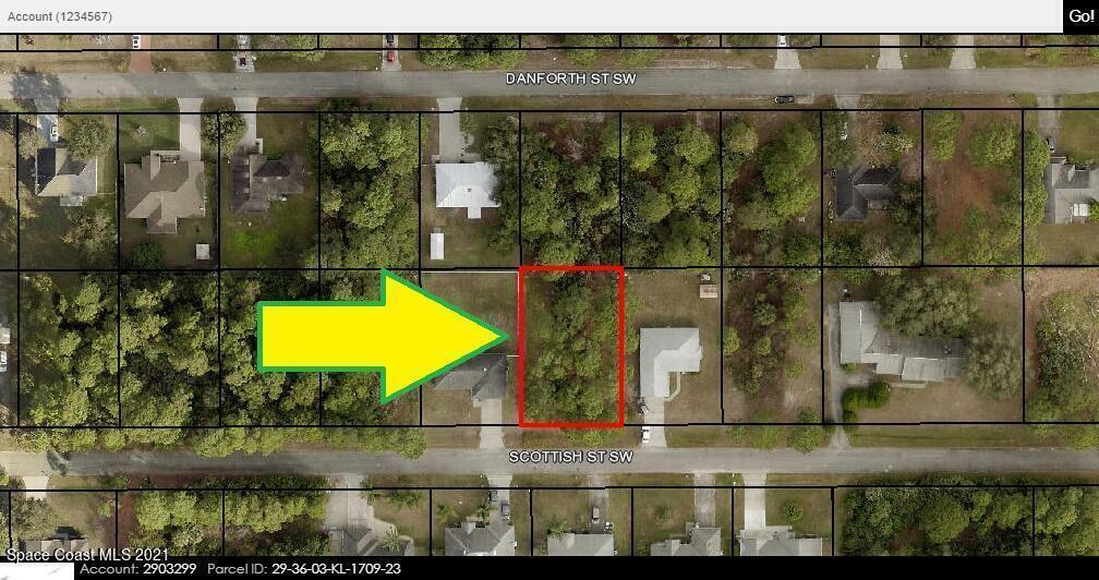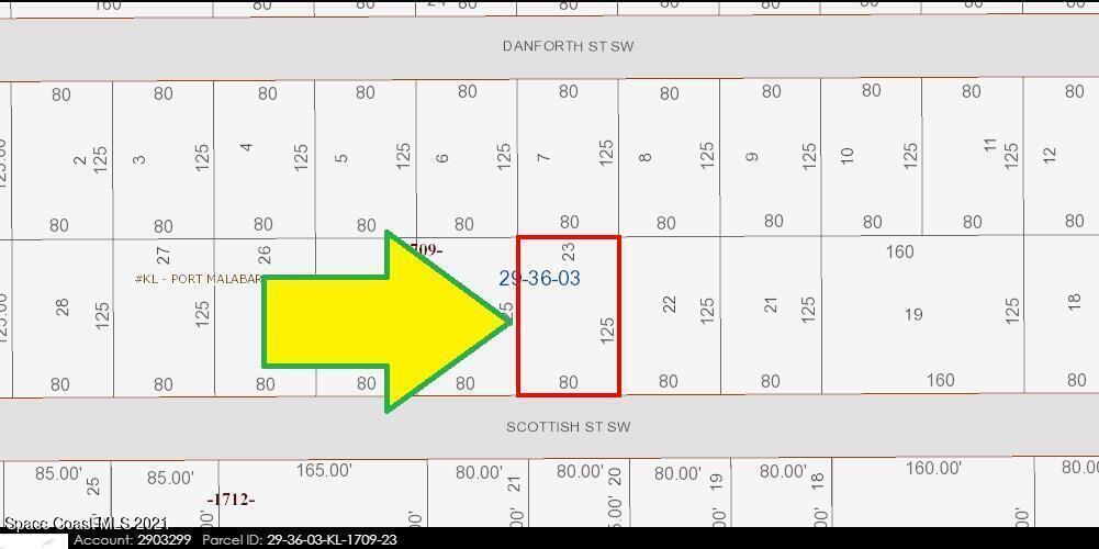 0.23 acre buildable single family residential lot [Rs2 Zoning] available in Port Malabar Unit #36 of Palm Bay. Nicely located in the SW Section, this lot is just 6 miles -13 minutes- to Publix Shopping, 4.8 miles -10 minutes- to Bayside High and WestSide Elementary Schools, 9.6 miles -23 minutes- to the Melbourne Square Mall, and just 15 miles -36 minutes- to the beaches in Indialantic. From Exit #176 of I-95 go west on Palm Bay Road NE. Turn left on Minton Road and proceed south for 2.5 miles. Turn right on Malabar Road and proceed west for 2.2 miles. Turn left on Hurley Boulevard SW and left on Scottish Street SW. The lot will be on the left.