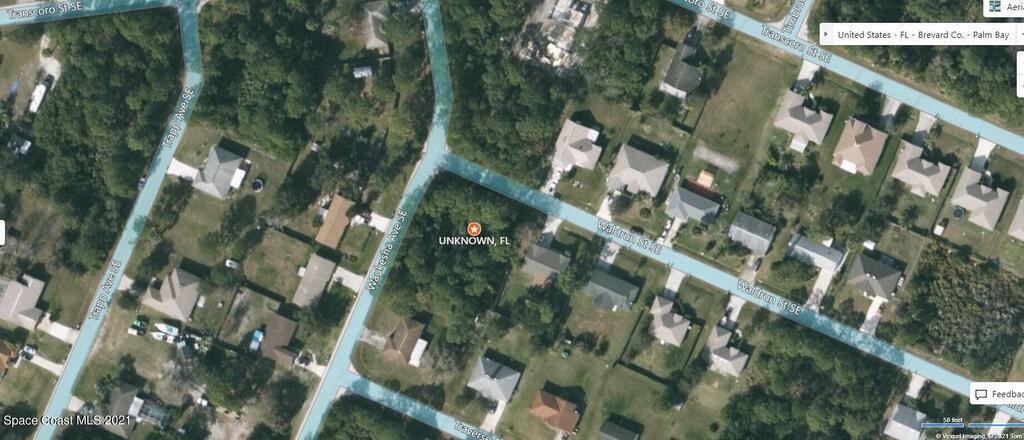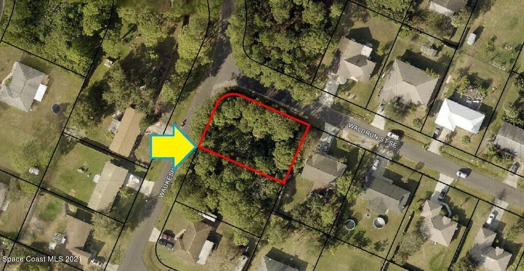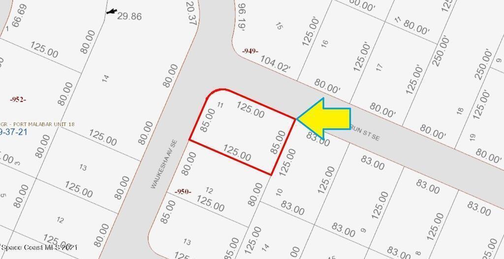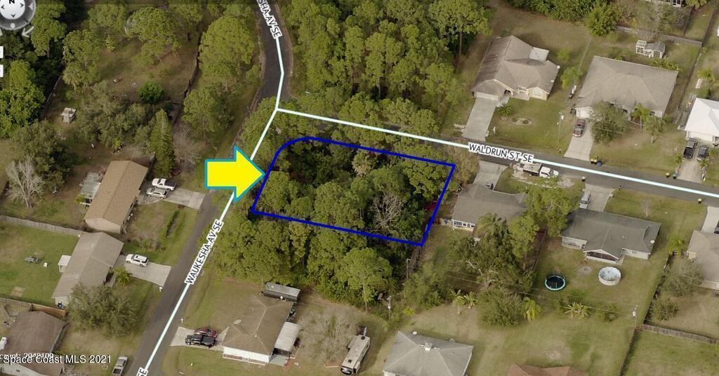 0.24 acre buildable residential Corner lot available in Port Malabar Unit 18 of Palm Bay. Located in the southeast section, this lot is just 2 miles - 5 minutes to Columbia Elementary School, 2.3 miles - 6 minutes to the Publix Supermarket, 11.4 miles - 23 minutes to Melbourne Airport, and 13.3 miles - 26 minutes to the beaches of Indialantic. From exit #173 of I-95 go west on Malabar Road NE for .2 miles, left on San Filippo Drive SE for 3.8 miles, right on Waldrun Street for .2 miles to the corner with Waukesha Avenue. The lot will be on your left.