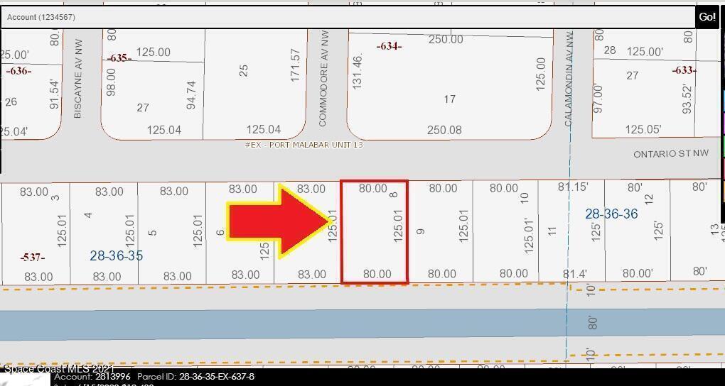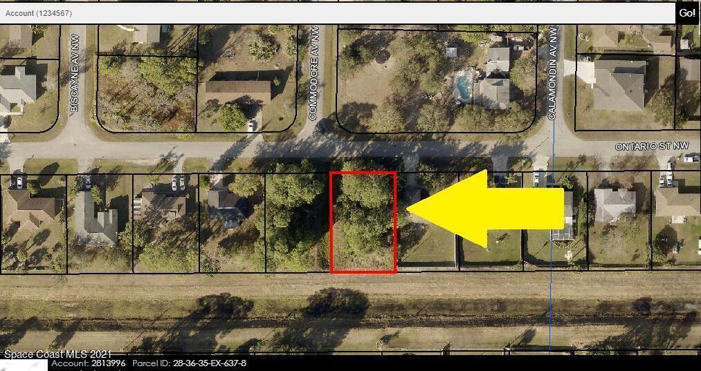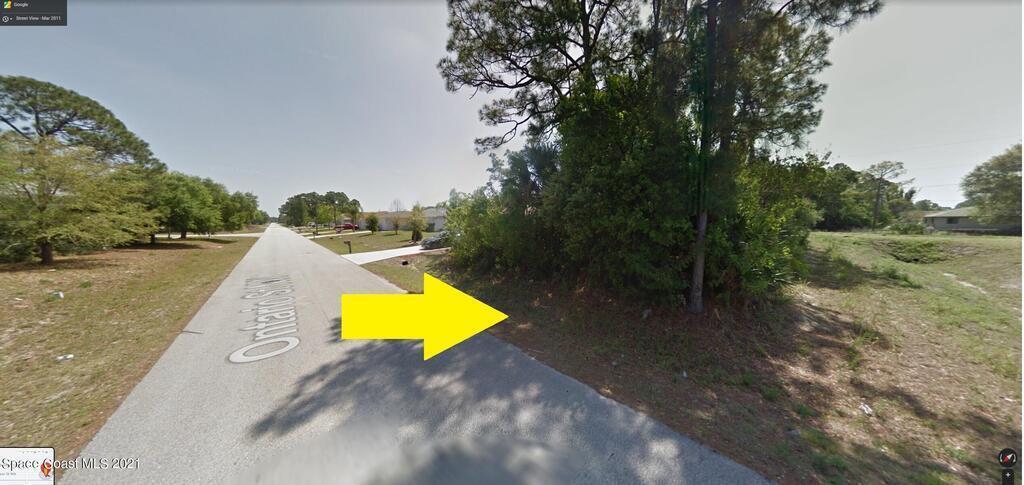 0.23 acre buildable single family residential lot with city water and city sewer available on a drainage right-of-way easement canal located in Port Malabar Unit #13. Nicely located in the NW section of Palm Bay, this lot is just 4.4 miles -11 minutes- to Publix Shopping, 4 miles -9 minutes- to the Walmart Supercenter, 2 miles -6 minutes- to Jupiter Elementary School, and just 12.8 miles -30 minutes- to the beaches on Indialantic. From Exit #176 of I-95 go west on Palm Bay Road. Turn left on Minton Road and proceed south for 1.7 miles. Turn right on Americana Boulevard NW and proceed west for 1 mile. Turn right on Ontario Street NW and the lot is on the left.