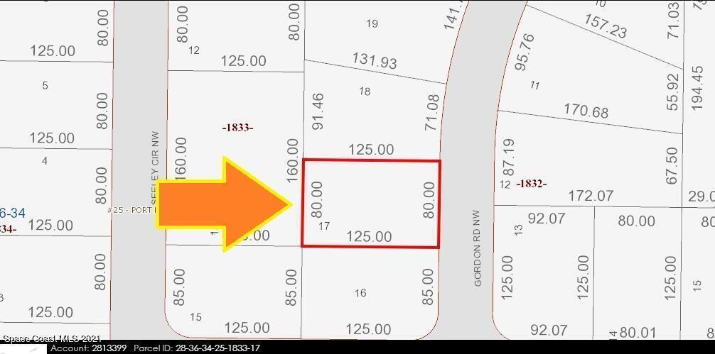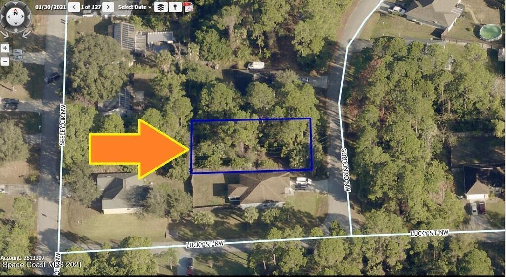 0.23 acre buildable single family residential lot [Rs2 Zoning] available in Port Malabar Unit #39. Nicely located in the NW Section of Palm Bay near the Palm Bay Parkway, this property is just 5.1 miles -11 minutes- to the Walmart Super Center, 2.4 miles -6 minutes- to Heritage High School, 11.9 miles -21 miles- to the Melbourne Square Mall, and just 17.4 miles -34 minutes to the beaches in Indialantic. From Malabar Road go west to Krassner Drive and make a right. Turn left on Lucky Street and right on Gordon Road NW. The Lot will be on the left.