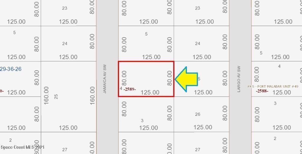 0.23 acre buildable residential lot available in Port Malabar Unit 49 of Palm Bay. Located in the southwest section, this lot is just 1.9 miles - 5 minutes to Westside Elementary School, 3.9 miles - 9 minutes to the Publix Supermarket, 15.3 miles - 29 minutes to Melbourne Airport, and 18.3 miles - 34 minutes to the beaches of Indialantic. From exit #176 of I-95 go west on Palm Bay Road for .7 miles, left on Minton Road for 3.3 miles, right on Jupiter Boulevard for .1 mile, left on DeGroodt Road for 3.3 miles, right on Osmosis Drive for 1.0 mile, left on Madden Avenue for .3 miles, left on Wiseman Street for .1 mile, and left on Jamaica Avenue. The lot will be on your right.
