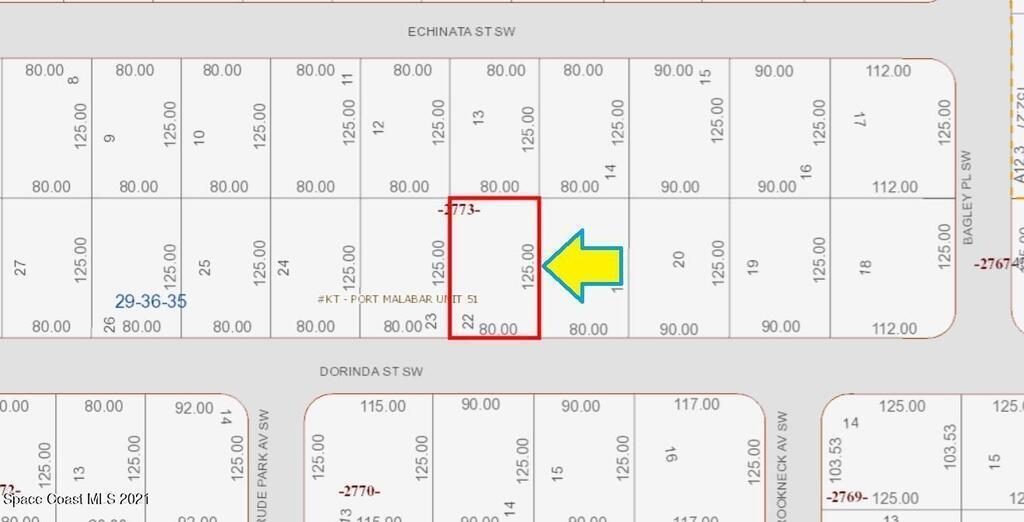 One of 2 side-by-side adjacent lots available in Port Malabar Unit 51 of Palm Bay (the other is 967 Dorinda Street). This 0.23 acre residential investment property is located in the southwest section. The lot does have road access but no utilities. The City of Palm Bay does not have any plans of placing utilities to this lot or area; so the lot is not build-able. The seller has no known knowledge of the property and makes no representations except for title. From exit #173 go west on Malabar Road for .2 miles, left on San Filippo Drive for 7.5 miles, left on St Andre Boulevard for 1.6 miles, right on Drude Park Avenue for .3 miles, and right on Dorinda Street. The lot will be on your left.