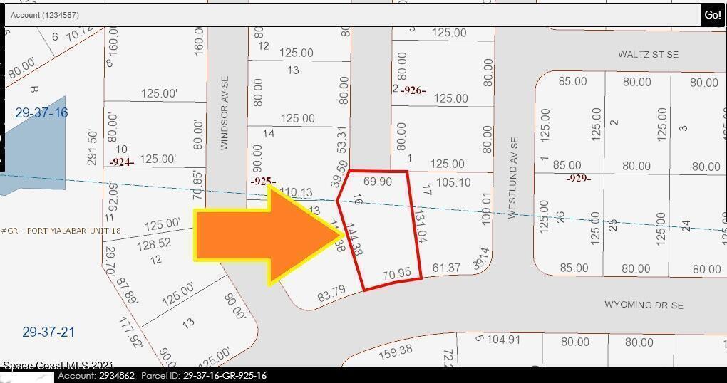 0.23 acre buildable single family residential lot [Rs2 Zoning] available in Port Malabar Unit #18. Nicely located in SE Palm Bay with sidewalks and city water available and near the PGA Majors Golf Course, this lot is just 2.4 miles -6 minutes- to Publix Shopping, 3.9 miles -9 minutes- to Bayside High and Westside Elementary Schools, 10.7 miles -22 minutes- to the Melbourne Square Mall, and just 12.8 miles -26 minutes to the beaches at Indialantic. From Exit #173 of I-95 go west on Malabar Road. Turn left on San Filippo Drive SE and proceed south for 3.3 miles. Turn left on Wyoming Drive Se and the lot will be on the left.