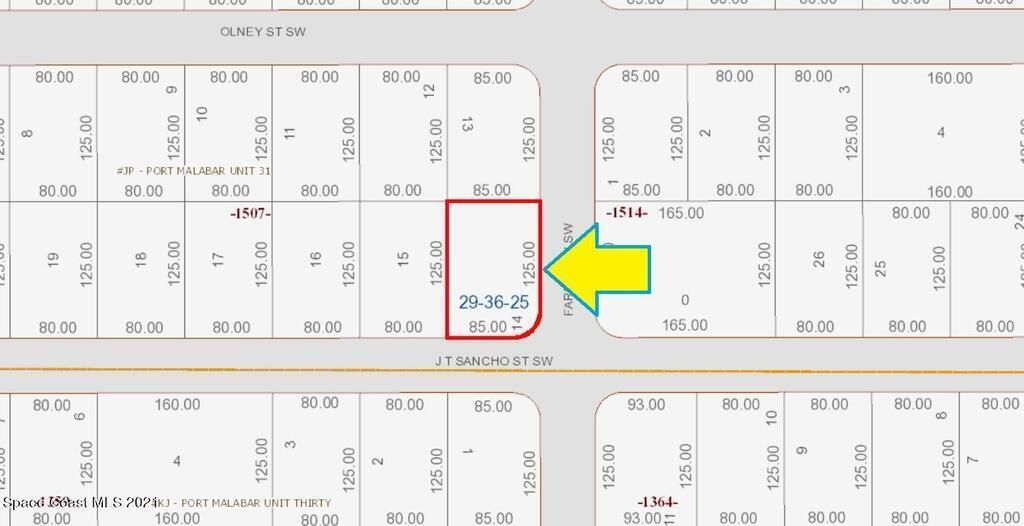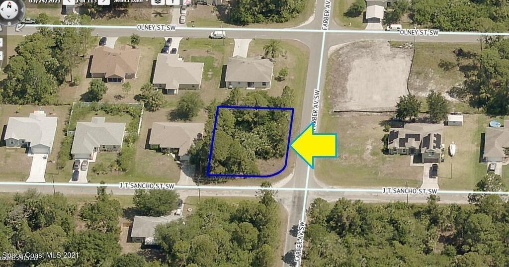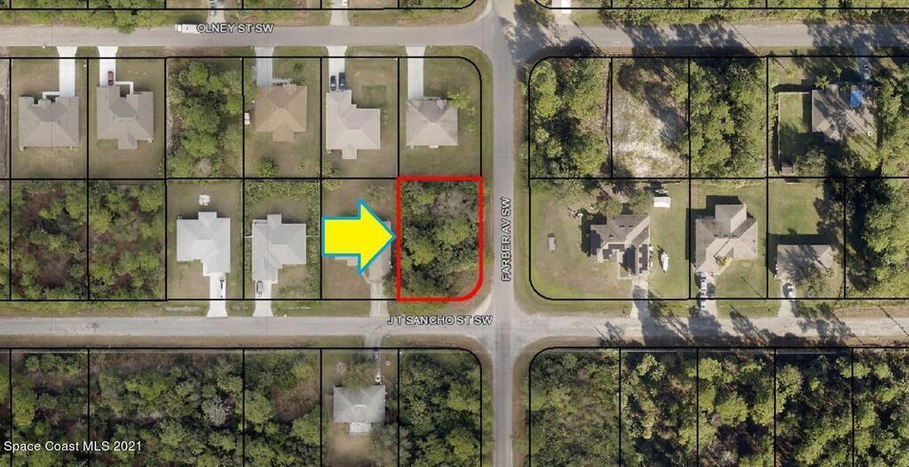 0.24 acre buildable residential lot available in Port Malabar Unit 31 of Palm Bay. Located in the southwest section, this corner lot has city water available, and is just 1.6 miles - 4 minutes to Westside Elementary School, 3.5 miles - 8 minutes to the Publix Supermarket, 15 miles - 31 minutes to Melbourne Airport, and 18 miles - 37 minutes to the beaches of Indialantic. From exit #176 of I-95 go west on Palm Bay Road for .7 miles, left on Minton Road for 3.3 miles, right on Jupiter Boulevard for .1 mile, left on DeGroodt Road for 3.7 miles, right on Fitchburg Street for .5 miles, and left on Farber Avenue for .2 miles. The lot will be on your right on the northwest corner at J T Sancho Street.