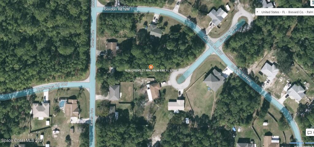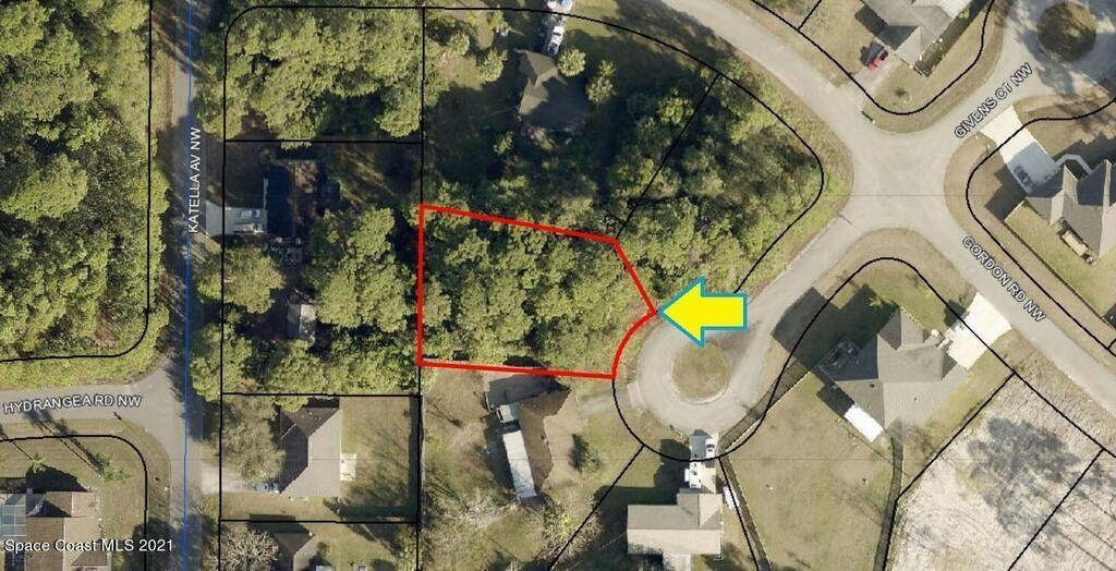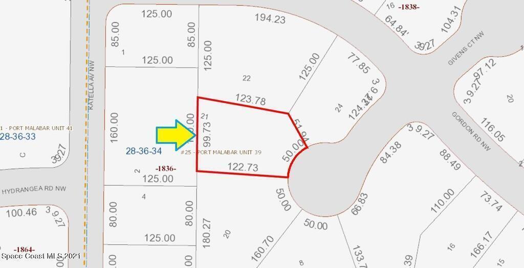 0.21 acre buildable residential lot available in Port Malabar Unit 39 of Palm Bay. Located in the northwest section, this lot is on a cul-de-sac and is just 2.4 miles - 6 minutes to Heritage High School, 3.4 miles - 7 minutes to the Winn Dixie Supermarket, 14.4 miles - 23 minutes to Melbourne Airport, and 17.3 miles - 29 minutes to the beaches of Indialantic. From exit #180 of I-95 go west on US-192 for .5 miles, left on St Johns Heritage Parkway for 6.1 miles, left on Malabar Road for .9 miles, left on Wisteria Avenue for .5 miles, right on Holbrook Road for .2 mile, left on Katella Avenue for .1 mile, right on Gordon Rod and right on Givens Court. The lot will be on your right.