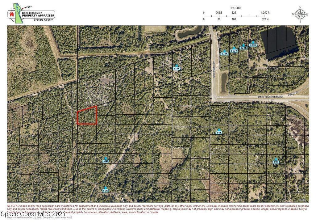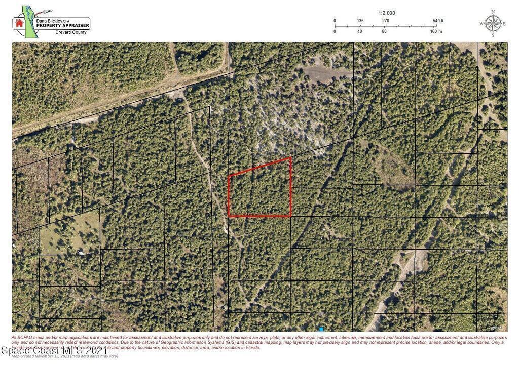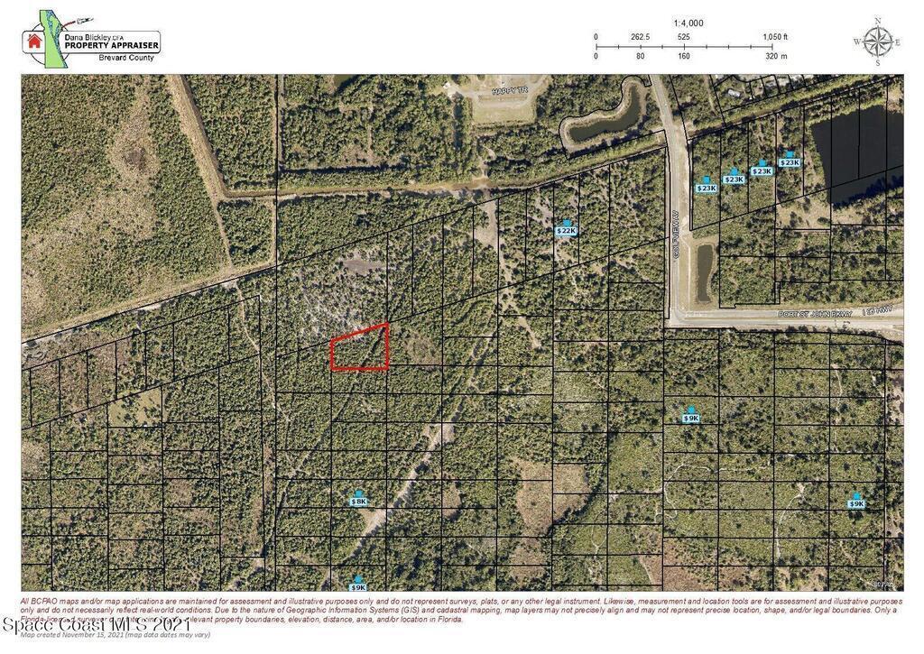 1.94 Acres. Property does not have a maintained access road leading to it. Located several hundred yars West of Golfview Street and Port St. John Parkway.Land is full of large palm trees and seems to not be wet. Good for recreational purposes and long term land investment.