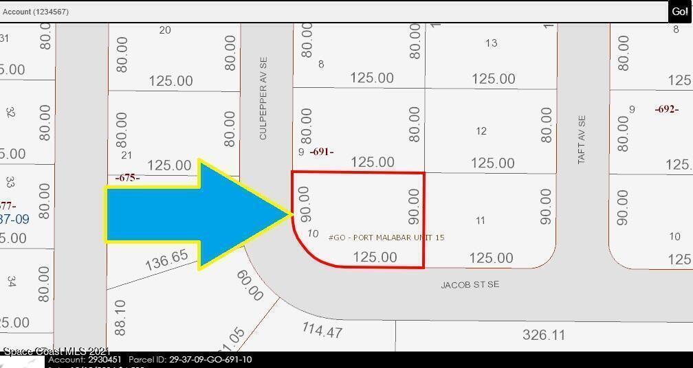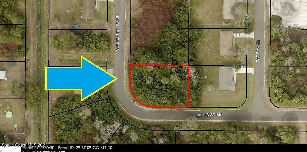 Oversized 0.26 acre buildable [[ Corner ]] single family residential lot available in Port Malabar Unit #15 of Palm Bay. Nicely located in the SE section near the PGA Majors Golf Course, thisl ot is just 3.2 miles -8 minutes- to Publix Shopping, 4.7 miles -10 minutes- to Bayside High and Westside Elementary Schools, 2 minutes -5 miles- to the Shoppes of Palm Bay, and just 12 miles -26 minutes to the beaches of Indialantic. From Exit #173 of I-95 to west on Malabar Road. Turn left on San Filippo Drive SE and proceed south for 1.6 miles. Turn fight on Tacoma Street SE which becomes Culpepper Avenue SE. Proceed to the corner.