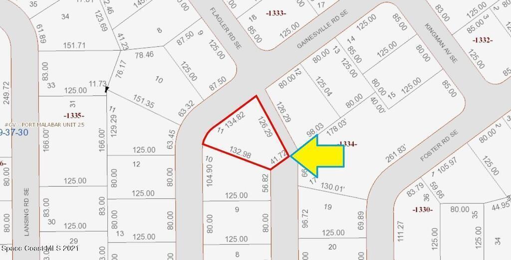 ***see agent remarks*** 0.27 acre buildable residential lot available in Port Malabar Unit 25 of Palm Bay. Located in the southeast section, this lot has a drainage canal in the rear allowing more privacy, and is just 2.7 miles - 7 minutes to the Publix Supermarket, 3.2 miles - 7 minutes to Westside Elementary School, 14.3 miles - 33 minutes to Melbourne Airport, and 19 miles - 34 minutes to the beaches of Indialantic. From exit #173 of I-95 go west on Malabar Road for .2 miles, left on San Filippo Drive for 5.7 miles, right on Cogan Drive for .6 miles, left on Paigo Street for .4 miles, left on Kingman venue, and right on Gainesville Road. The lot will be on your left.