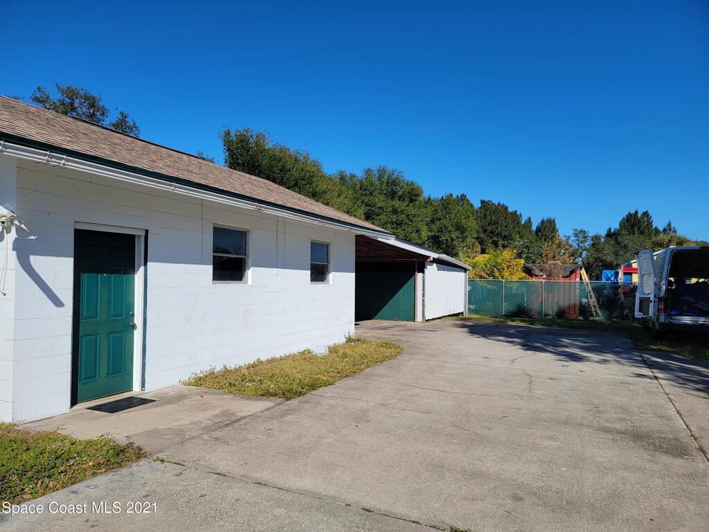 Rare opportunity to lease an 1172 sq. ft. consisting of a shop, secured outdoor storage/workroom, and covered staging area and fenced yard on a 1/4 acre fenced lot, feet from Palm Bay Road and a few blocks from US1. If needed, owners can install a garage door for the right tenant.Approximate Measurements: Shop/Office 26' X 20' = 520 Sq. feet, Covered Secured Storage 16' x 22' = 252 Sq. feet, Covered Staging Area 20' x 20' = 400 Sq. feet, Total Lot Size: 1/4 Acre