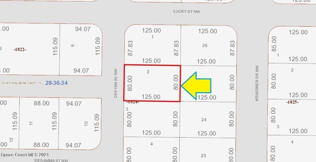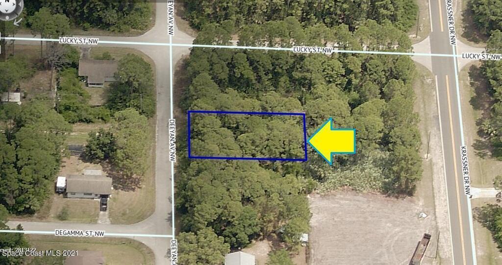 0.23 acre buildable residential lot available in Port Malabar Unit 39 of Palm Bay. Located in the northwest section, this lot is just 2.2 miles - 5 minutes to Heritage High School, 3 miles - 7 minutes to the Winn Dixie Supermarket, 14.8 miles - 24 minutes to Melbourne Airport, and 17.1 miles - 32 minutes to the beaches of Indialantic. From exit #180 of I-95 go west on US-192 for .5 miles, left on St Johns Heritage Parkway for 6.1 miles, left on Malabar Road for 1.3 miles, left on Krassner Drive for .1 mile, left on Seeley Circle for .1 mile, and right on Deeyan Avenue. The lot will be on your right.