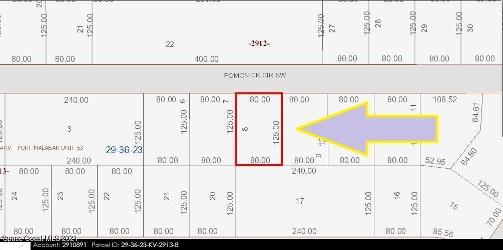 0.23 acre residential investment property available in Port Malabar Unit #53 of SW Palm Bay. This property is rurally located near the famous Compound area and the extension to the Palm Bay Parkway. There is direct road access to the property; but since the City of Palm Bay does not have any plans of placing utilities in this area, the lot is not buildable. From Exit #176 of I-95 go west on Palm Bay Road NE. Turn left on Minton Road and proceed south for 3.3 miles. turn right on Jupiter Boulevard SW and left on Degroodt Road SW. Proceed south for 2.5 miles and turn right on J.A. Bombardier Boulevard. Proceed west for 1.4 miles and turn left on Sapodilla Road SW and right on Pomonick Circle SW. The lot is on the left.