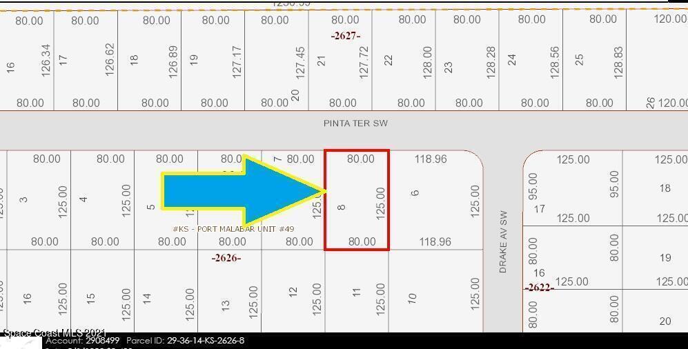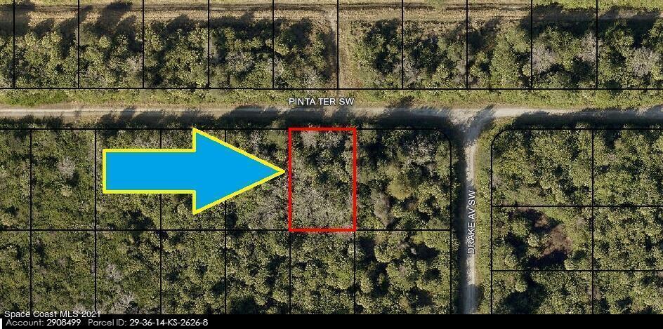 0.23 acre single family residential lot [Rs2 Zoning] in the buildable section of Palm Bay located in Port Malabar Unit #49. Nicely located in the rural SW section near the famous Compound, this lot is just 2.9 miles -8 minutes- to Publix Shopping, 1.7 miles -5 minutes- to Bayside High and WestSide Elementary Schools, 6.1 miles -13 minutes- to the Shoppes of Palm Bay, and 16.1 miles -38 minutes- to the beaches in Indialantic. From Exit #176 of I-95 go west on Palm Bay Road. Turn left on Minton Road, right on Jupiter Boulevard SW and left on DeGroodt Road SW. Proceed south for 2.5 miles and turn right on J.A. Bombardier Boulevard. Turn right on Madden Avenue, Rright on Perkins Street and left on Pinta Terrace. The lot is on the left