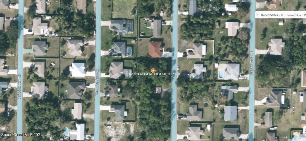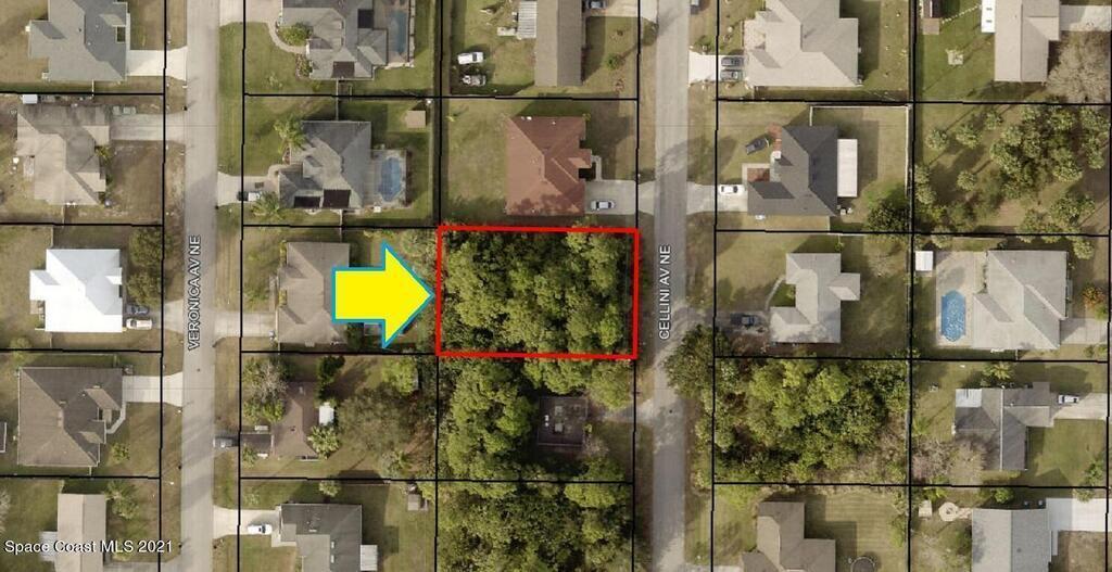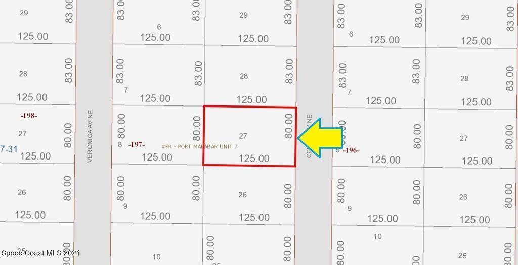 0.23 acre buildable residential lot available in Port Malabar Unit 7 of Palm Bay. Located in the northeast section, this lot has city water and sewer available, and is just .6 miles - 3 minutes to McAuliffe Elementary School, 2.2 miles - 6 minutes to the Publix Supermarket, 9 miles - 20 minutes to Melbourne Airport, and 11.9 miles - 25 minutes to the beaches of Indialantic. From exit #176 of I-95 go west on Palm Bay Road for .7 miles, left on Minton Road for 1.7 miles, left on Americana Boulevard for .2 miles, and right on Cellini Avenue. The lot will be on your right.