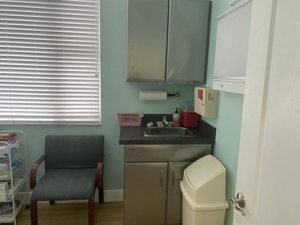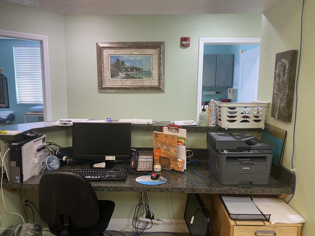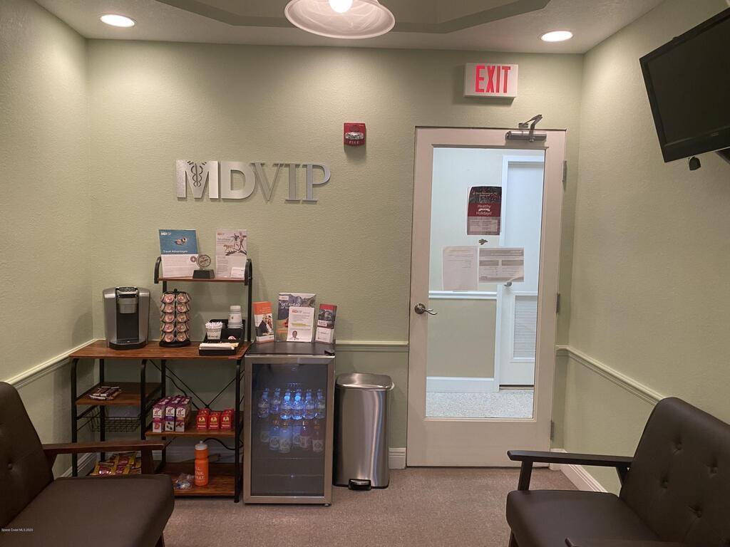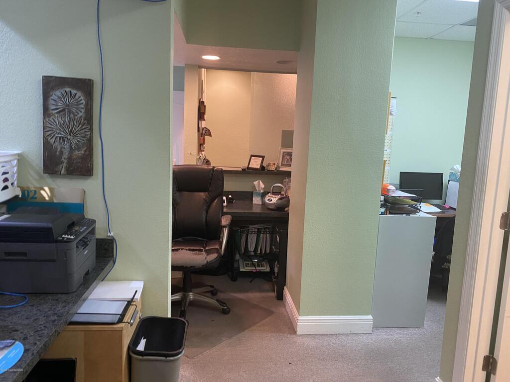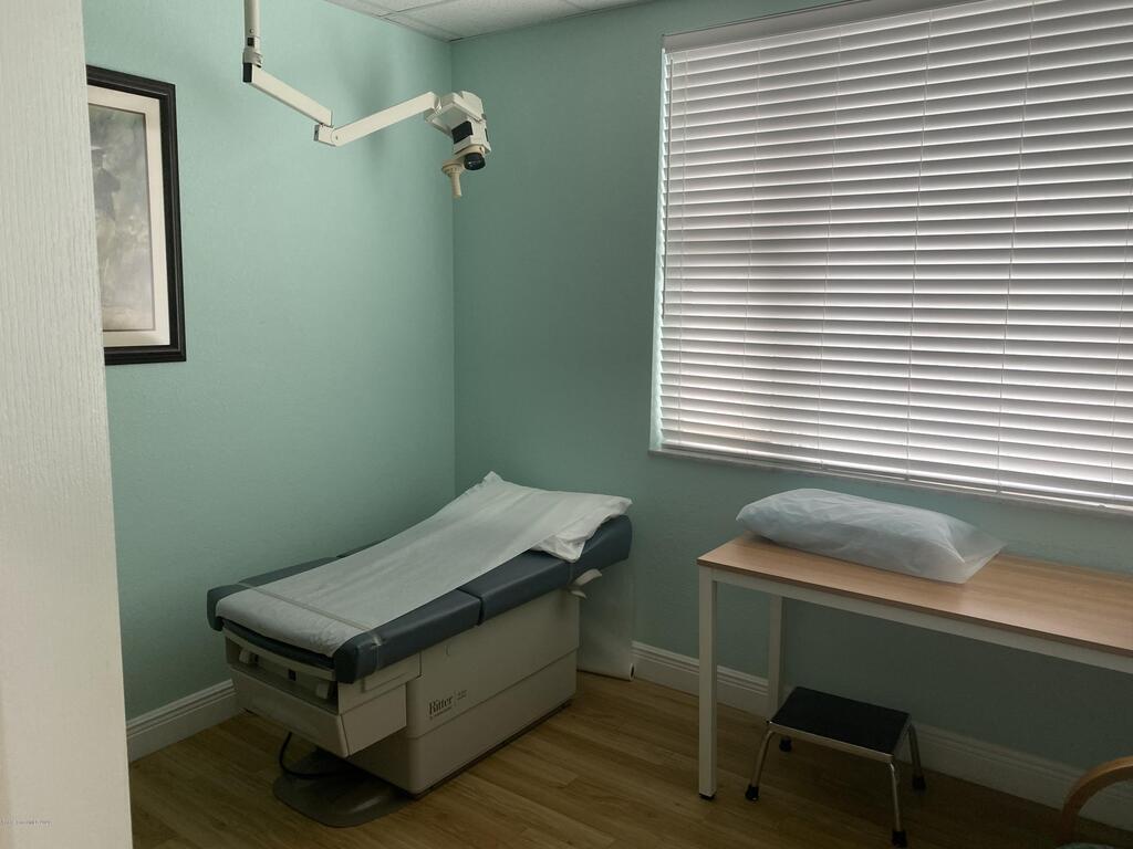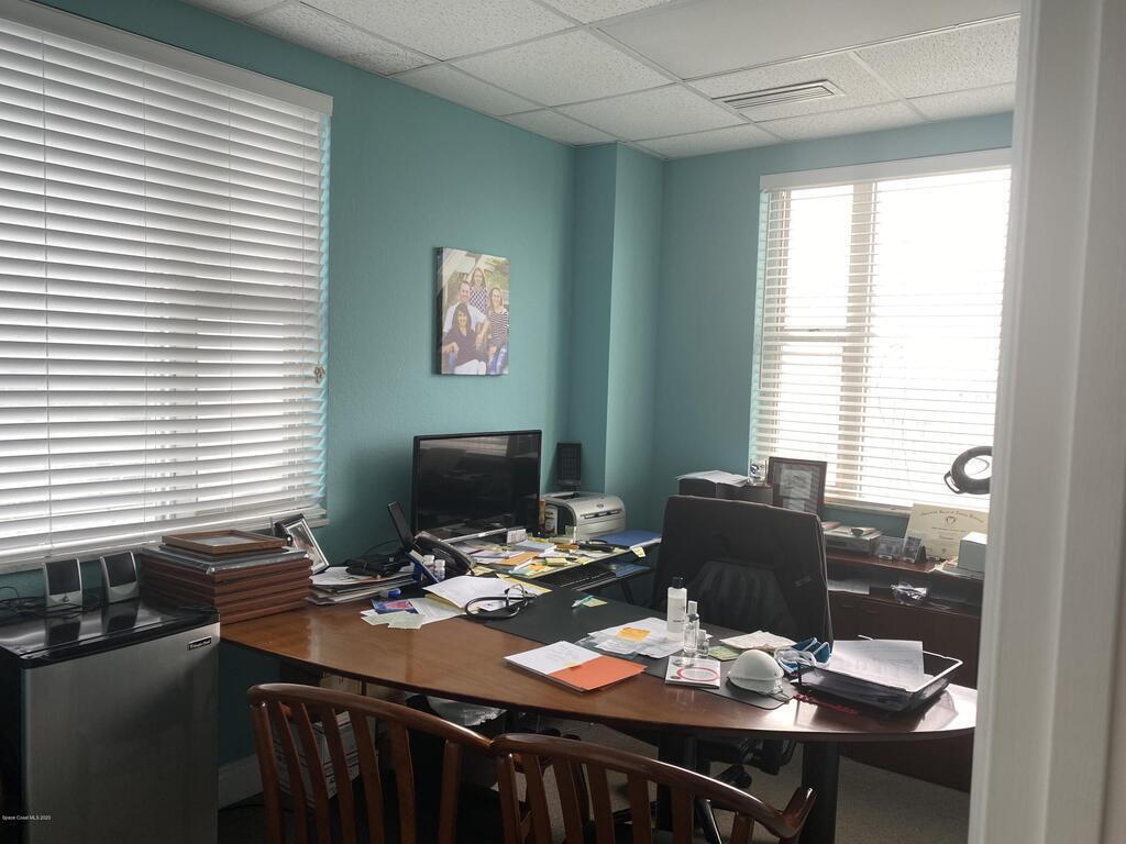 Office space in the center of Cocoa Beach. The Cape Royal is an iconic Cocoa Beach building with ample parking and a great central location. This updated suite consists of 4 units (#602,604,606 & 608) totaling just under 1200 sq ft and has been built out for a medical office with 3 exam rooms. Each exam room has it's own sink. There is also a waiting room/reception area, 2 private offices, storage room, and break room with refrigerator, microwave and private staff bathroom. Public restrooms are available just down the hall near the elevators. Some furnishings and exam tables can be included with the sale. Building HOA includes electric, water, trash, AC, exterior maintenance and insurance.