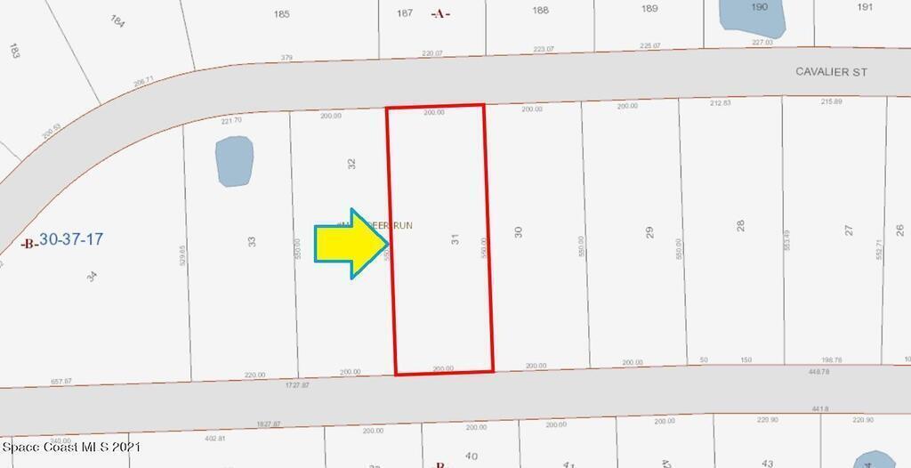 2.53 acre Vacant Residential Lot (Zoned Agricultural -AU- with 1 horse per acre) available in the Highly Desirable Equestrian Deer Run Community in South Brevard County, where homes are a minimum of 2,100 sq.ft. under air. Your new property with community amenities, (i.e. tennis courts, clubhouse/rec.room) is about 8 miles to the Indian River/U.S. Highway #1, and 20 minutes to WalMart Supercenter. From Exit #166 of I-95 go west on St Johns Heritage Parkway for 1.7 miles, left on Babcock Street for 1.6 miles, right on Deer Run Road for .3 miles, and right on Cavalier Street for 1.2 miles. The lot will be on your left.