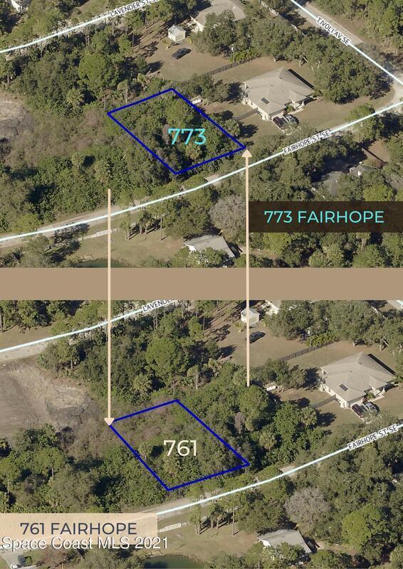Two adjutant buildable lots available: 773 & 761! BUY ONE OR TWO LOTS: perfect for your dream home/s in Palm Bay! No CDDs or HOA with fees or deed restrictions! This lot is nearly fourth of an acre of the sunny Florida dream. Although out in the scenic country, this lot is still conveniently located to shopping, dining, banking, etc. New construction is everywhere you look and you can be part of the action. This peaceful Palm Bay neighborhood offers the perfect setting to build - or/and to invest. NO FLOOD ZONE!!