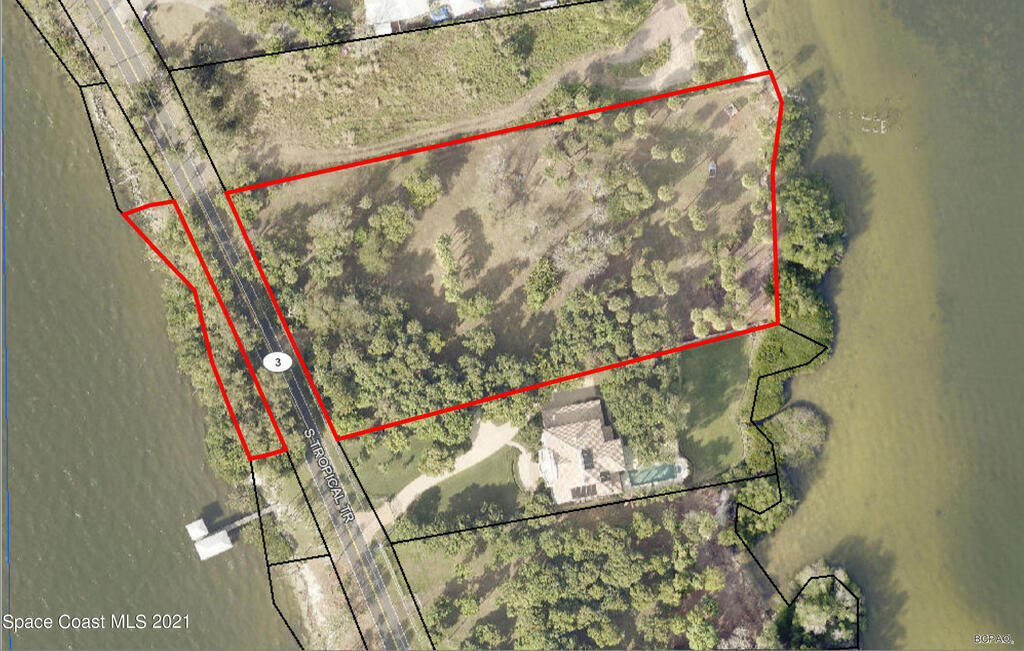 Once in a lifetime opportunity to own 225+/- feet on both the Banana River and the Indian River South of the Pineda Causeway (SOPI). This 2.19 acre river to river property is in the most sought-after location on S. Merritt Island and is at one of the highest elevations on the south end of the island. Sweeping views to the east capture inspiring sunrises over the Banana River, Lansing Island, and the Atlantic Ocean, while expansive westward views of sunset on the Indian River and Melbourne skyline are breathtaking. This unique property has no wetlands or marsh and offers an abundance of mango, palm and oak trees that provide shade, privacy, and fruit. Build your dream home of any size on the ridge and look out over both rivers or subdivide the parcel into two magnificent waterfront