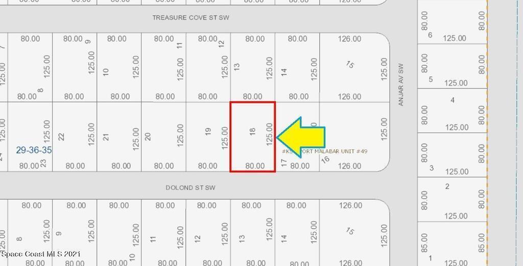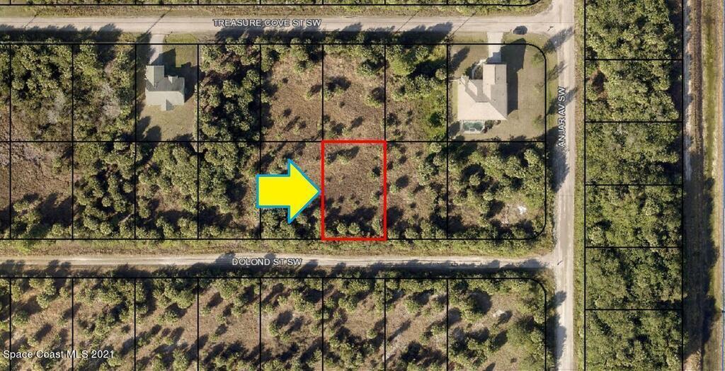 0.23 acre buildable residential lot available in Port Malabar Unit 49 of Palm Bay. Located in the southwest section, this lot is just 2.6 miles - 8 minutes to Westside Elementary School, 4.6 miles - 12 minutes to the Publix Supermarket, 16.6 miles - 33 minutes to Melbourne Airport, and 21.2 miles - 36 minutes to the beaches of Indialantic. From exit #176 of I-95 go west on Palm Bay Road for .7 miles, left on Minton Road for 3.3 miles, right on Jupiter Boulevard, left on DeGroodt Road for 4.6 miles, right on St Andre Boulevard for 1.2 miles, right on Madden Avenue r on Leafy Road, road turns left and becomes Anjar, and left on Dolond Street. The lot will be on your right.