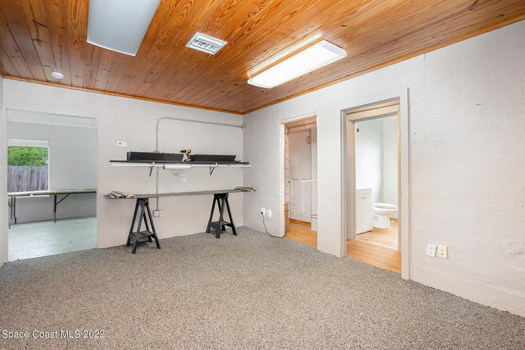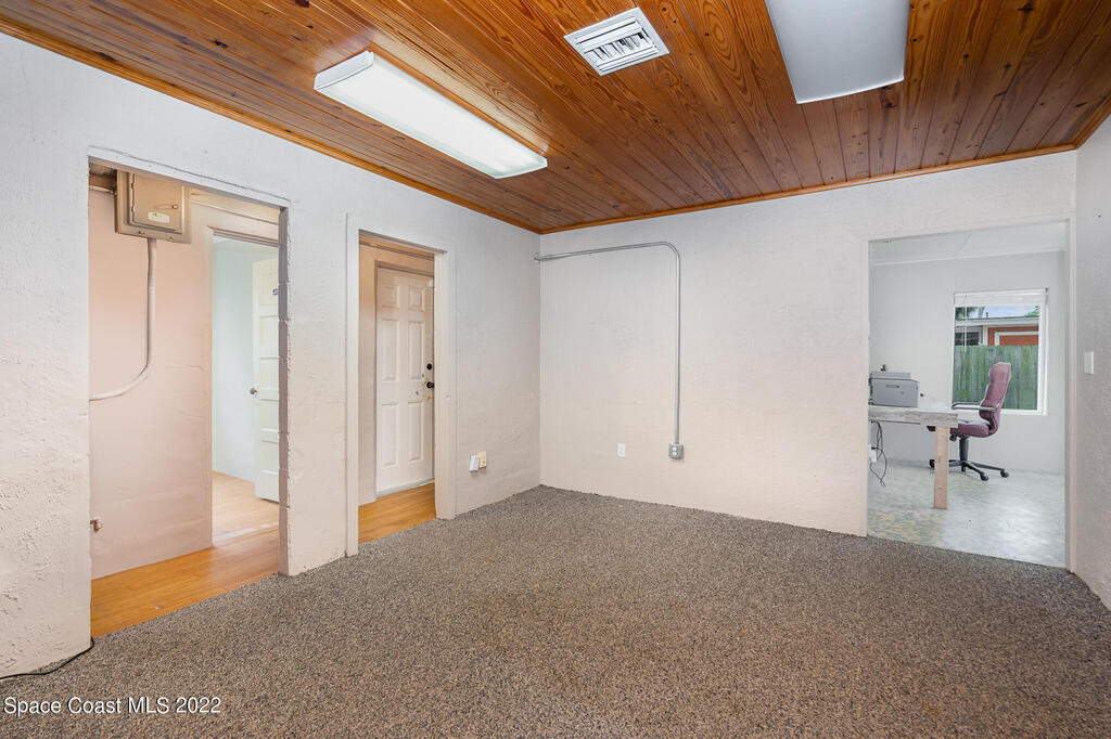 Great Commercial property located on Hopkins Ave for easy customer access. Main building is 1016 sf. and 338 sf. out- building w/large access door. Updated bathroom, separate office area, ample parking. The rear lot is fenced w/access opening to alley behind the property. All trees on property have been professionally trimmed and inspected by FPL. Newly upgraded FPL and Spectrum outdoor wiring. Recent interior paint. Property Survey included. 2005 newer windows (except bathroom& front door). 2006 - Blown insulation in attic, 2007 - Insulated and installed drywall in garage 2012 -Well pump 2016. A/C installed 2018 - New bathroom 2019- Upgraded electrical, security system, 2020 Roof & water treatment system. Sale does not include metal out building.