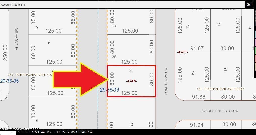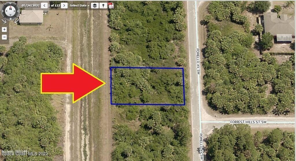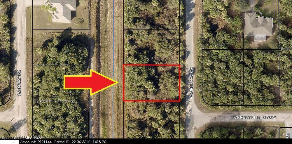 0.23 acre buildable single family residential lot with a drainage right-of-way easement canal in the back available in Port Malabar Unit #30 of Palm Bay. Nicely located in the SW Section, this lot is conveniently located near Publix Shopping and Bayside High and Westside Elementary Schools. From Exit #176 of I-95 go west on Palm Bay Road. Turn left on Minton Road and proceed south for 3.3 miles. Turn right on Jupiter Boulevard SW and left on Degroodt Road SW. Proceed south for 4.6 miles and turn right on St. Andre Boulevard. Proceed for 0.9 miles and turn right on Pomello Avenue SW. The lot is on the left.