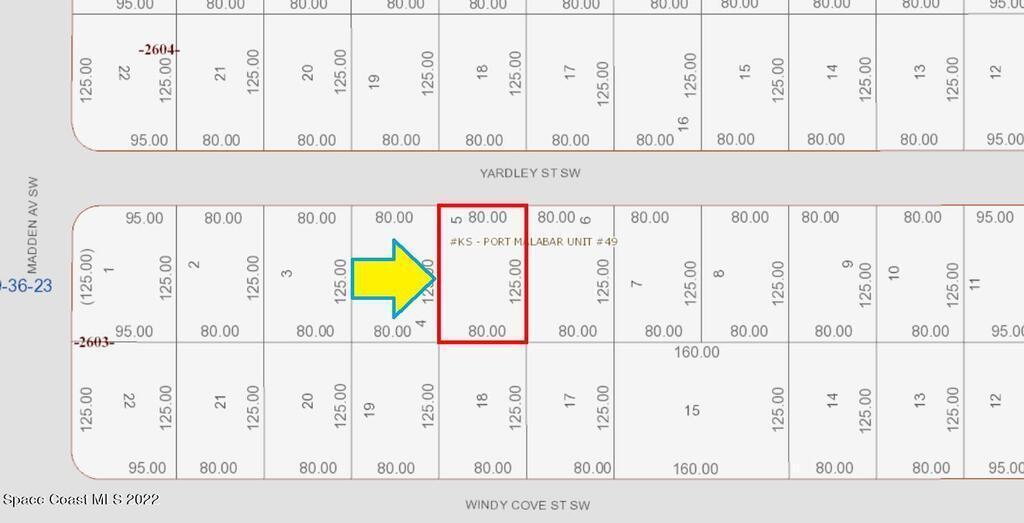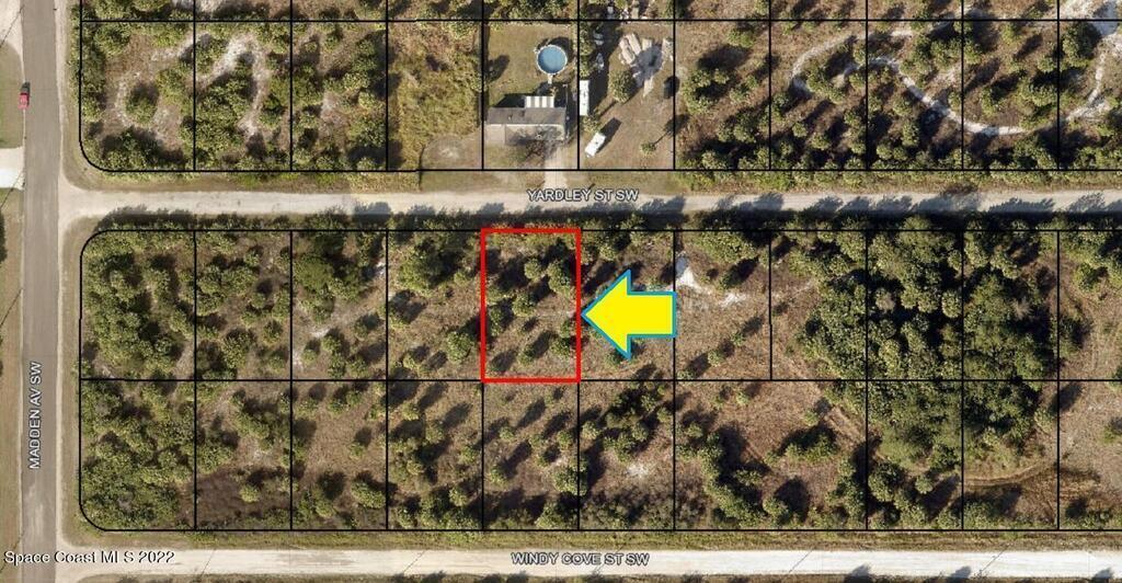 0.23 acre buildable residential lot available in Port Malabar Unit 49 of Palm Bay. Located in the southwest section, this lot is just 1.7 miles - 5 minutes to Bayside High School, 2.9 miles - 7 minutes to the Publix Supermarket, 14.6 miles - 31 minutes to Melbourne Airport, and 20.1 miles - 36 minutes to the beaches of Indialantic. From exit #176 of I-95 go west on Palm Bay Road for .7 miles, left on Minton Road for 3.3 miles, right on Jupiter Boulevard for .1 mile, left on DeGroodt Road for 2.5 miles, right on JA Bombardier Boulevard for .9 miles, left on Madden Avenue for .5 miles, and left on Yardley Street. The lot will be on your right.