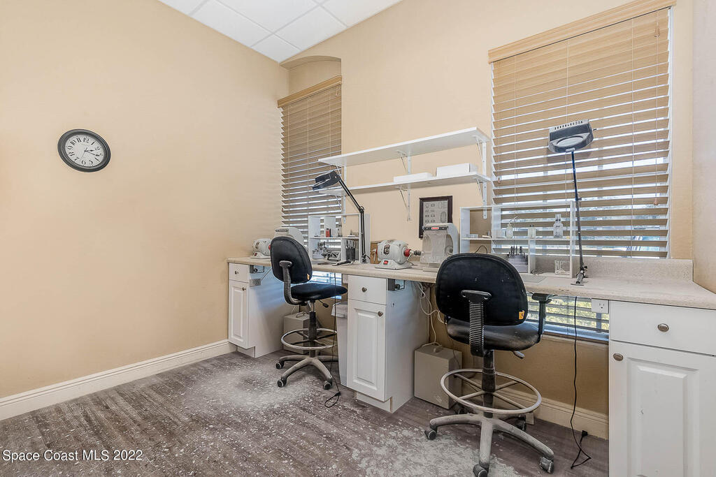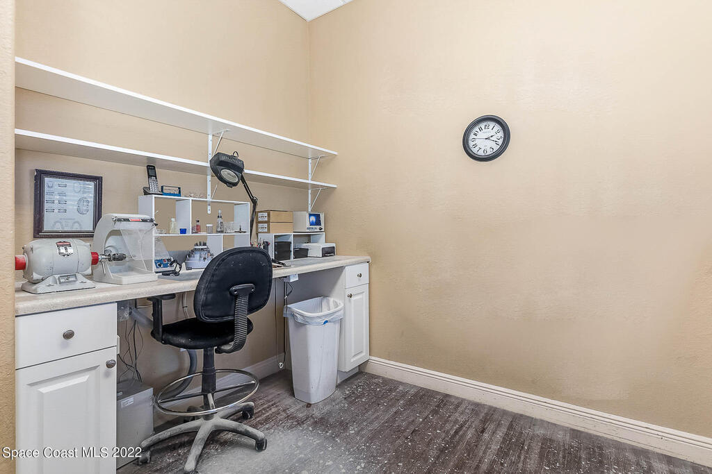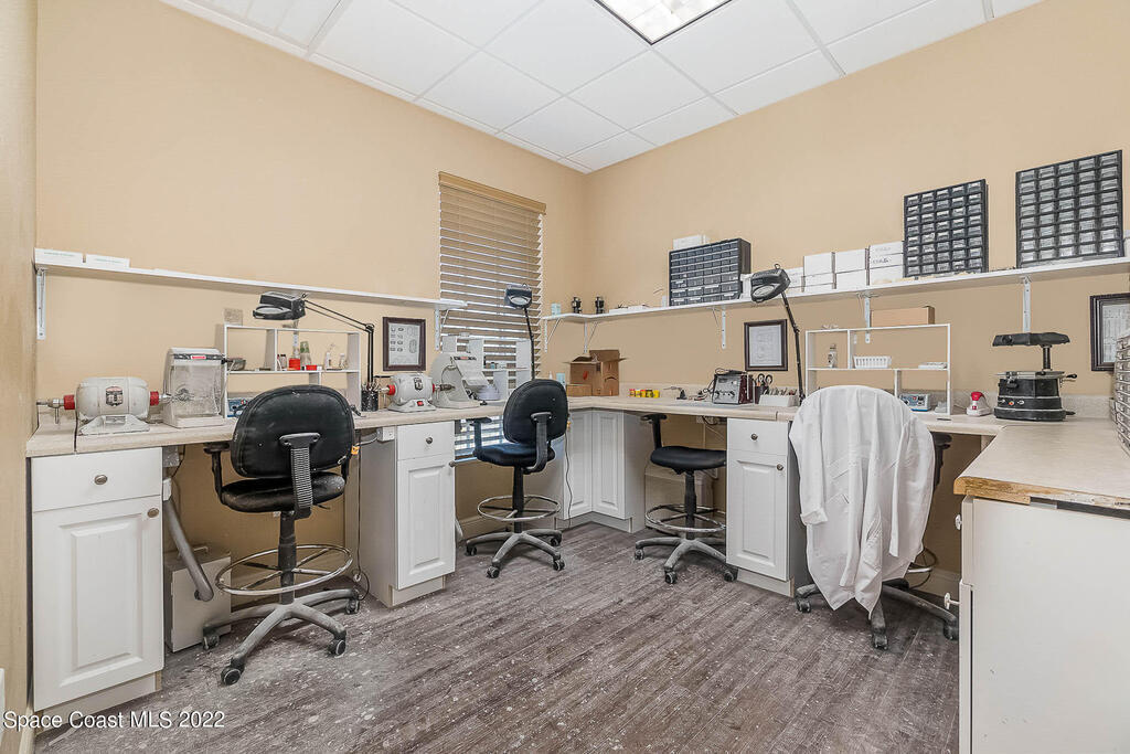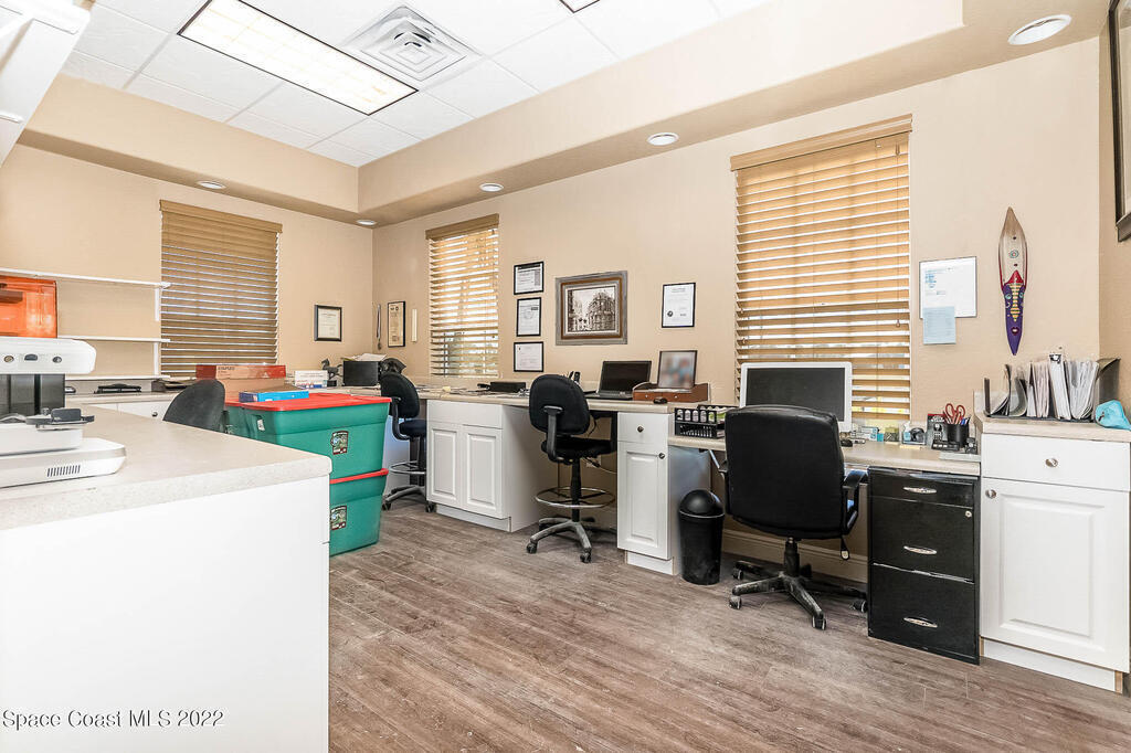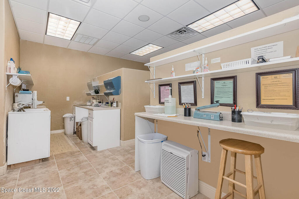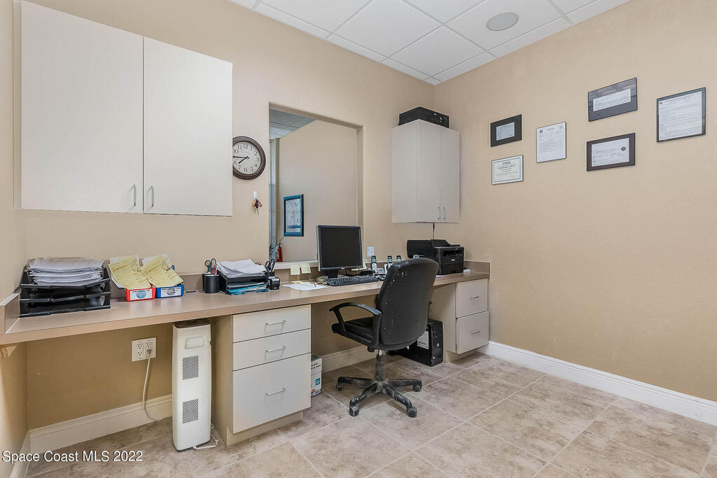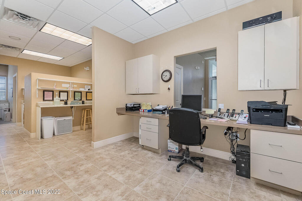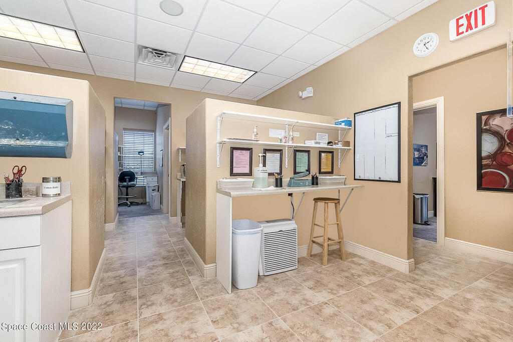 This charming 1,412sqft class B office condominium is built with solid concrete block construction. The unit was previously used as a dental lab, housing 4 offices, an open collaboration space, a reception area & 1 bathroom. Acoustic ceilings crown durable tile & laminate floors. The building is enhanced w/plenty of parking. Pleasantly located off bustling Eau Gallie Blvd, this commercial complex displays several small lakes, tidy landscaping & attractive Key West-style architecture topped w/metal roofs. Affordable monthly dues include exterior maintenance, landscaping/lawn care & building insurance. Well-traveled Wickham Road is just up the street to the east & I-95 is a short distance to the west. It's a prime spot that's easily accessible to all!