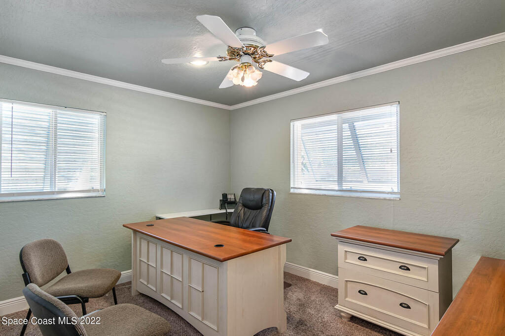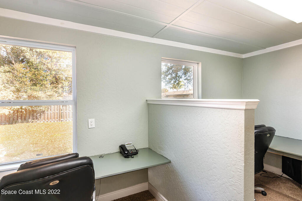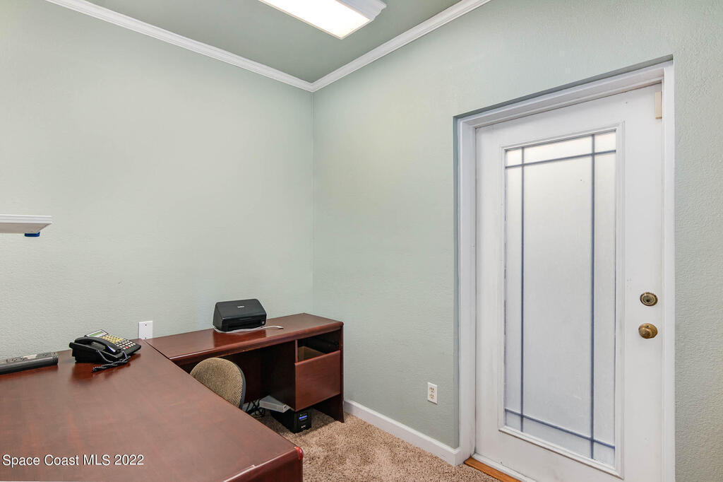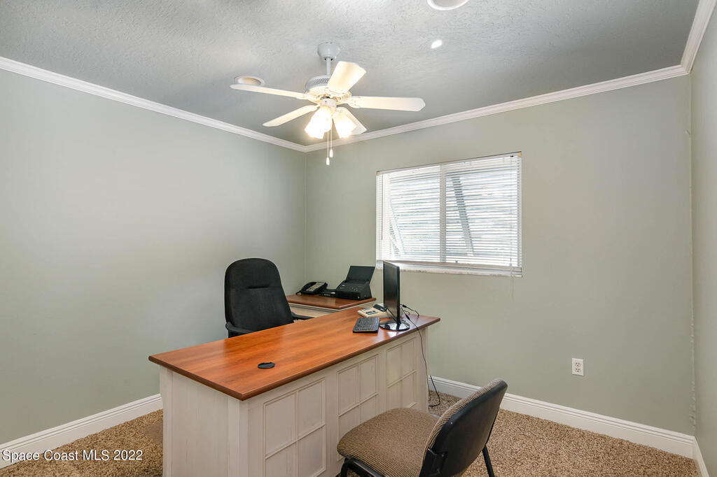 Turnkey office building with 10 separate office spaces that include a conference room and lobby/reception area. There is also a kitchen and one and half bathrooms. Ample parking in front of the building. The backyard is completely fenced in and features a large paver patio area and screened porch plus outside storage shed. The possibilities are unlimited, located close to the Merritt Island Historic District, shopping, restaurants and schools. This is a must, call today!