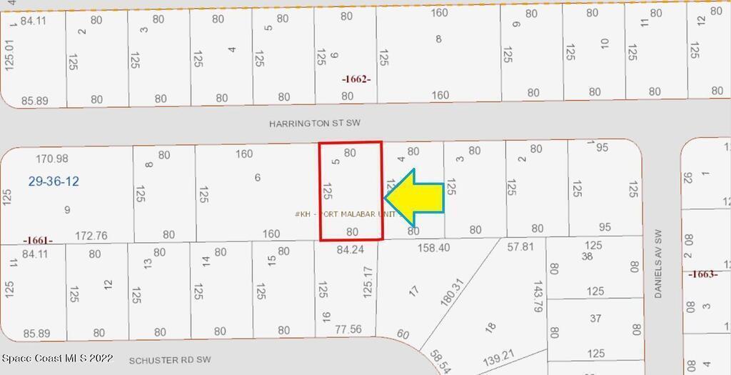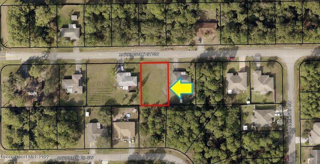 0.23 acre buildable residential lot available in Port Malabar Unit 37 of Palm Bay. Located in the southwest section, this lot is just 1.3 miles - 4 minutes to Jupiter Elementary School, 2.1 miles - 5 minutes to the Winn Dixie Supermarket, 11.9 miles - 27 minutes to Melbourne Airport, and 14.5 miles - 33 minutes to the beaches of Indialantic. From exit #173 of I-95 go west on Malabar Road for .2 miles, left on San Filippo Drive for .5 miles, right on Jupiter Boulevard for 3.4 miles, left on Garvey Road for .3 miles, and left on Harrington Street. The lot will be on your right.