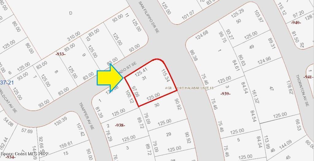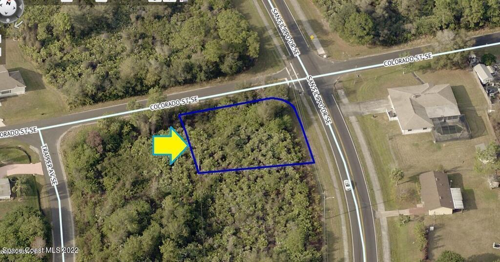 0.30 acre buildable residential corner lot available in Port Malabar Unit 18 of Palm Bay. Located in the southeast section, this lot has city water available, and is just 1.5 miles - 3 minutes to Columbia Elementary School, 2.5 miles - 6 minutes to the Publix Supermarket, 10.9 miles - 24 minutes to Melbourne Airport, and 12.8 miles - 27 minutes to the beaches of Indialantic. From exit #173 of I-95 go west on Malabar Road for .2 miles, and left on San Filippo Drive for 3.4 miles. the lot will be on your right.