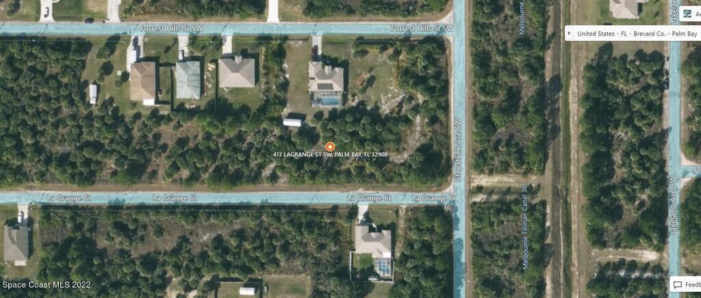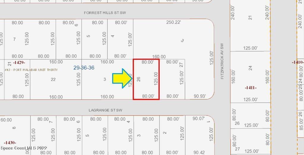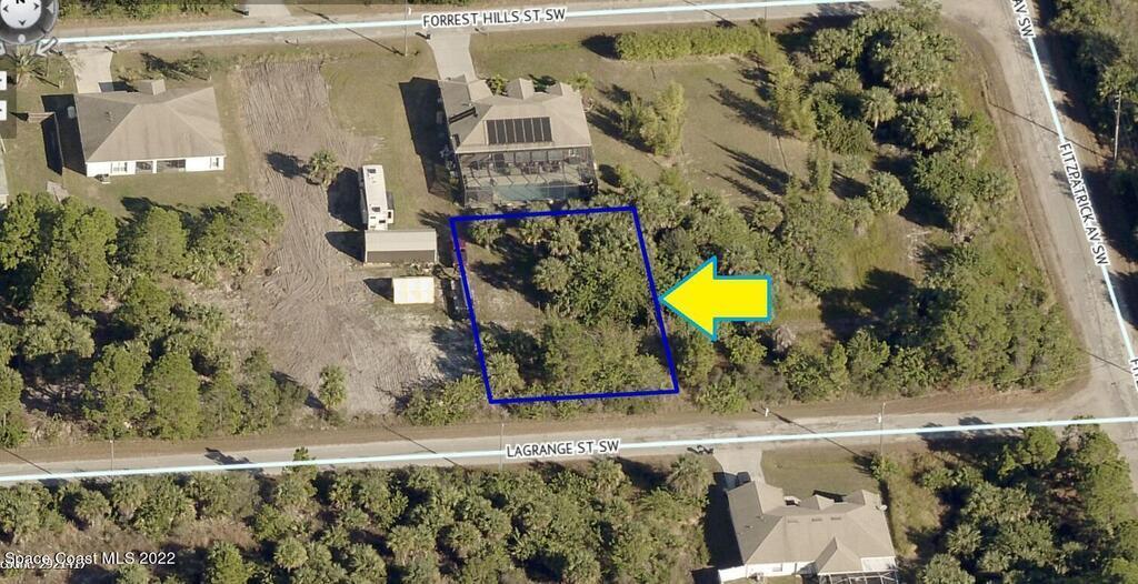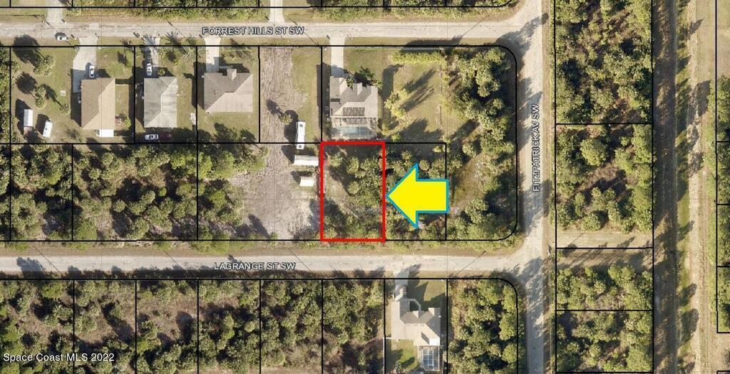 1 of 2 side by side adjacent 0.23 acre buildable single family residential lots available in Port Malabar Unit #30 of Palm Bay. Located in the southwest section, this lot is just 2.4 miles - 5 minutes to Westside Elementary School, 4.4 miles - 9 minutes to the Publix Supermarket, 15.6 miles - 32 minutes to Melbourne Airport, and 17.5 miles - 34 minutes to the beaches of Indialantic. From exit #173 of I-95 go west on Malabar Road NE for .2 miles, left on San Filippo Drive SE for 7.3 miles, continue on DeGroodt Road SW for .2 miles, left on St. Andre Boulevard for .4 miles, right on Fitzpatrick Avenue for .2 miles, and left on Lagrange Street. The lot will be on your right.