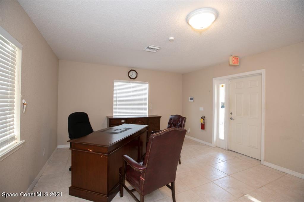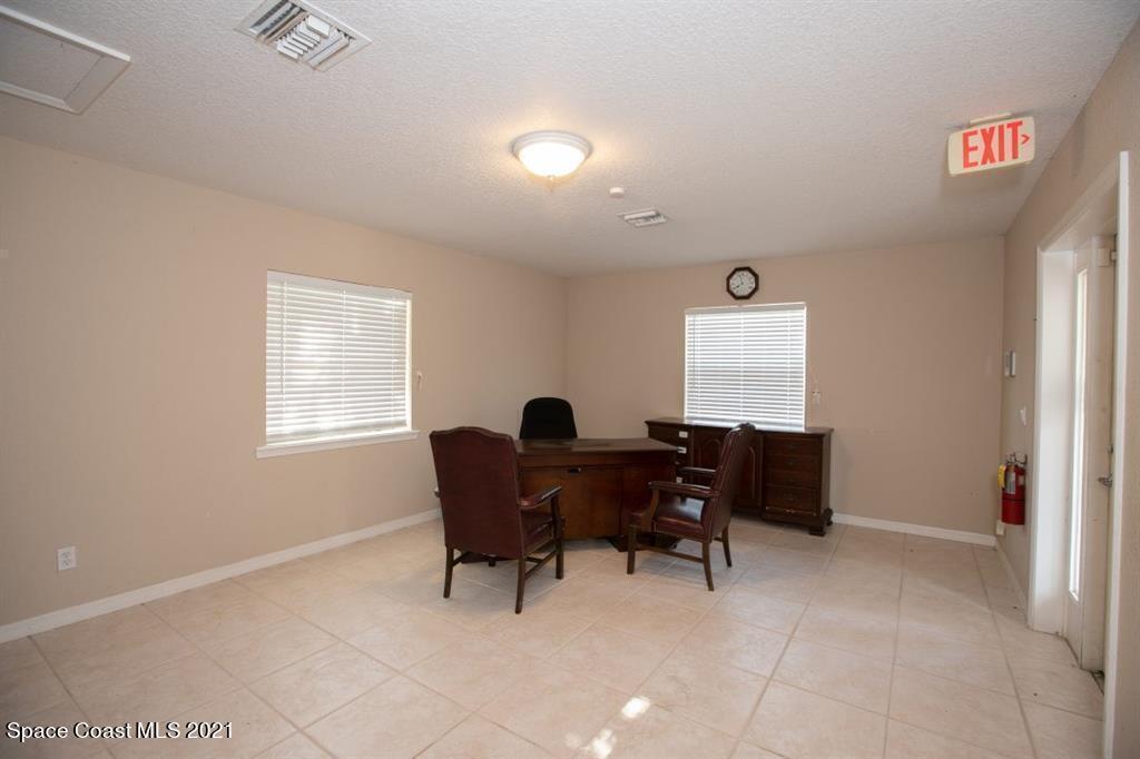Perfect office space for your business. Room for 2 offices plus conference room, plenty of storage. 2 handicap accessible bathrooms, small kitchen area. Neutral color palate, tile flooring & windows throughout the building. Circular driveway & handicap designated parking. Easy to reach, just one block from busy Palm Bay Road NE (Route 516). Many other commercial businesses within a mile.