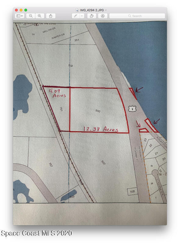 Gorgeous views of Intracoastal Waterway. Direct Indian River frontage. Build your dream home with a dock you've always wanted. Bring your boats, kayaks & toys. Zoned Residential or Commercial. Also could have Conditional Use as an Assisted Living Facility and more. Two lots for sale for a total of 16.50 Acres. Great location at the intersection of Rocky Point Rd and U.S. 1 with land included on both sides of US 1. Plenty of room for many possibilities.