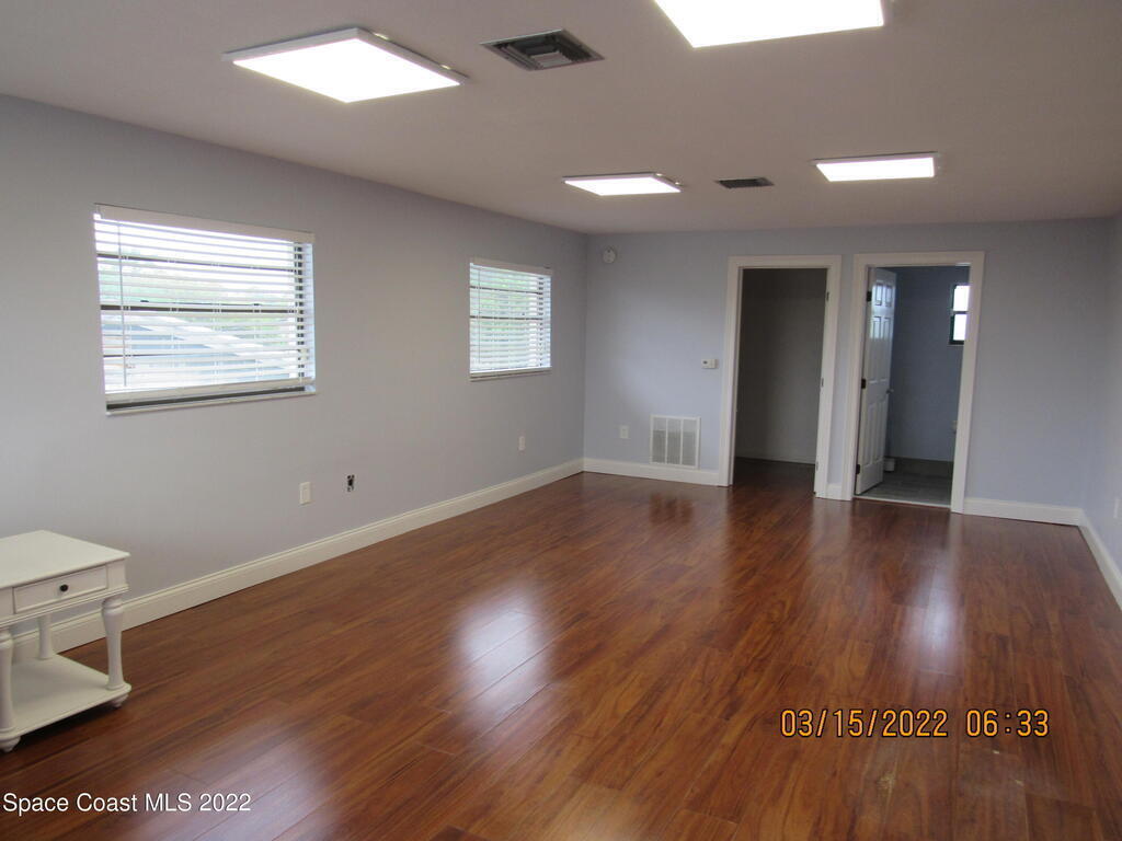 Second floor office space, corner unit with additional windows, wood floors, storage room has HVAC, one bathroom. Owner will offer month to month lease