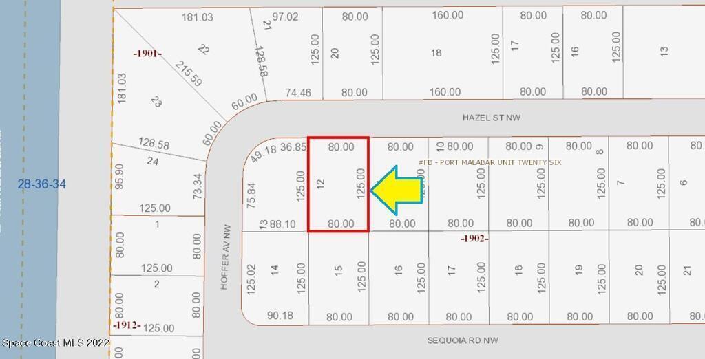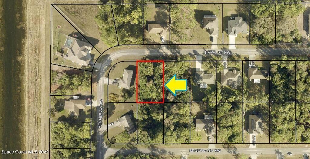 0.23 acre buildable residential lot available in Port Malabar Unit 26 of Palm Bay. Located in the northwest section, this lot is just 2.2 miles - 6 minutes to Jupiter Elementary School, 2.8 miles - 7 minutes to the Winn Dixie Supermarket, 11.5 miles - 25 minutes to Melbourne Airport, and 14.4 miles - 30 minutes to the beaches of Indialantic. From exit #180 of I-95 go west on US-192 for .5 miles, left on St Johns Heritage Parkway for 6.1 miles, left on Malabar Road for 1.8 miles, left on Hillock Avenue, left on Deedra Street, right on Hoffer Avenue, and right on Hazel Street. The lot will be on your left.