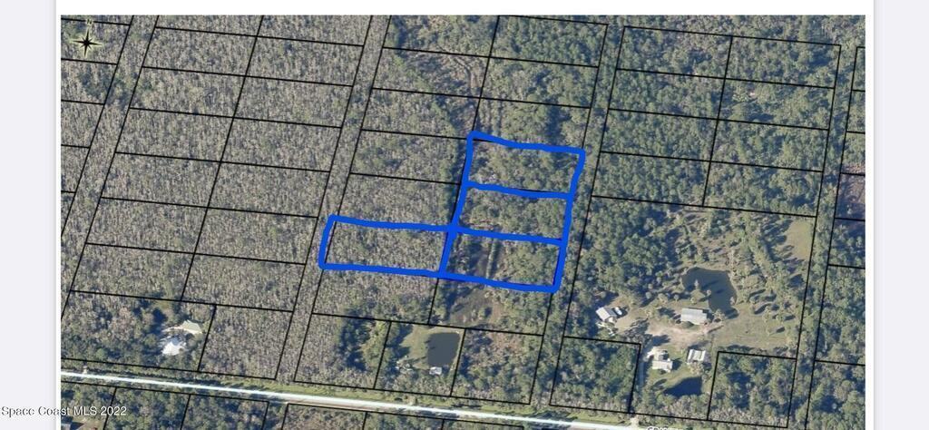 Welcome to the country. 4 vacant lot parcels (1.4 acres each) sold together. Owner will not separate. There is no HOA to worry about. Easy trips to shopping, Indian River, Valkaria Airport and I95. The parcels of land (totaling 5.6 acres) do not have access (land locked). The City of Grant has plotted roadways that have not been built yet. Buyer is responsible for survey as well as using their own due diligence to verify building requirements, cost of installing roadways to access property, flood zones or wet lands. Owner also selling front parcel (for an additional amount) with back parcels. Reference MLS# 929985.