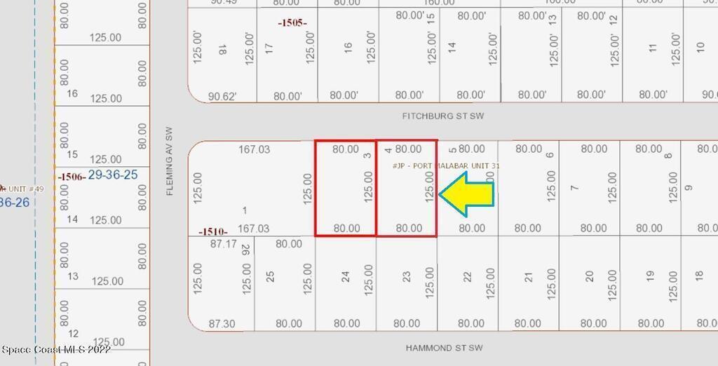 0.46 acre buildable residential lot available in Port Malabar Unit 31 of Palm Bay. Located in the southwest section, this lot has city water available. From exit #176 of I-95 go west on Palm Bay Road for .7 miles, left on Minton Road for 3.3 miles, right on Jupiter Boulevard, left on DeGroodt Road for 3.7 miles, and right on Fitchburg Street. The lot will be on your left.