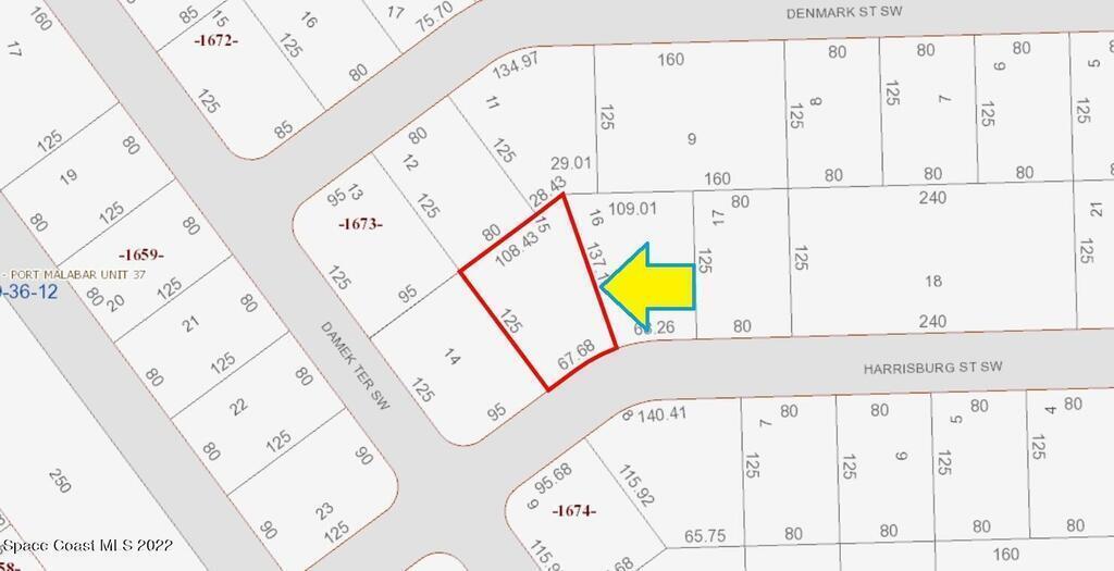 One of 2 side-by-side adjacent lots available in Port Malabar Unit 37 of Palm Bay (the other is 499 Harrisburg). Located in the southwest section, this buildable residential lot is just 1.7 miles - 5 minutes to Jupiter Elementary School, 2.5 miles - 6 minutes to the Winn Dixie Supermarket, 12.1 miles - 24 minutes to Melbourne Airport, and 15 miles - 29 minutes to the beaches of Indialantic. From exit #176 of I-95 go west on Palm Bay Road for .7 miles, left on Minton Road for 2.5 miles, right on Malabar Road for 1 mile, left on Garvey Road for 1.5 miles, and left on Harrisburg Street. The lot will be on your left.