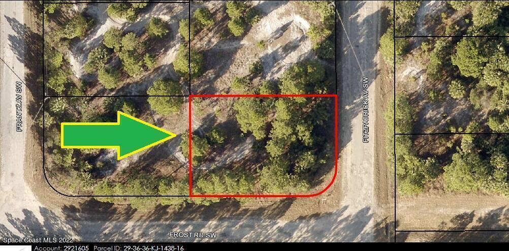 0.24 acre buildable single family residential **corner** lot available in Port Malabar Unit #30 of Palm Bay. Located in the southwest section near the famous Compound this lot is just 1.6 miles - 5 minutes to Westside Elementary School, 3.5 miles - 8 minutes to the Publix Supermarket, 15 miles - 29 minutes to Melbourne Airport, and 17.7 miles - 34 minutes to the beaches of Indialantic. From exit #173 of I-95 go west on Malabar Road. Turn left on San Filippo Drive SE and proceed south for 7.3 miles. Continue on DeGroodt Road SW and turn left on Saint Andre Boulevard, Turn left on Fitzpatrick Avenue SW, Palm Bay