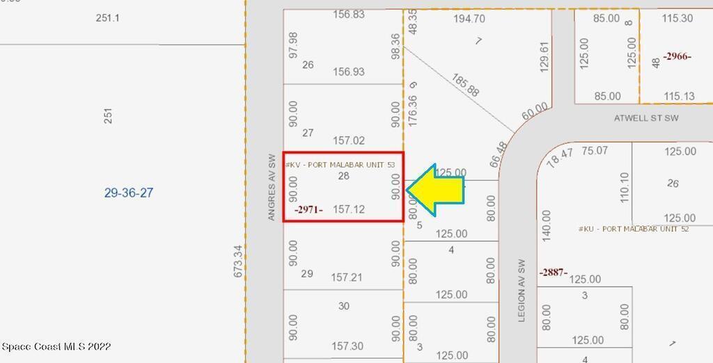 0.26 acre vacant lot available in Port Malabar Unit #53 of Palm Bay. There are no utilities present at this lot or in this area; so the lot and the unit are not build-able at the present time. The seller has no knowledge of the property and makes no representations except for title. This property is for investment purposes only in the future of Palm Bay. From exit #176 of I-95 go west on Palm Bay Road for .7 miles, left on Minton Road for 3.3 miles, right on Jupiter Boulevard and left on DeGroodt Road for 2.5 miles, right on JA Bombardier Boulevard for 2.7 miles, left on Kentucky Drive for .3 miles, right on Atwell Street, left on Legion Avenue, right on Leesburg Street, and right on Angres Avenue. The lot will be on your right.
