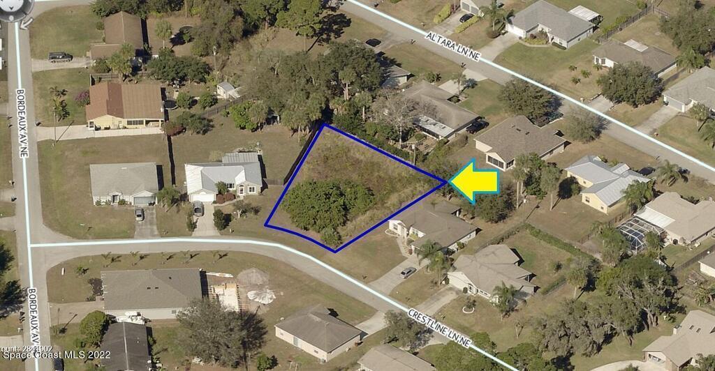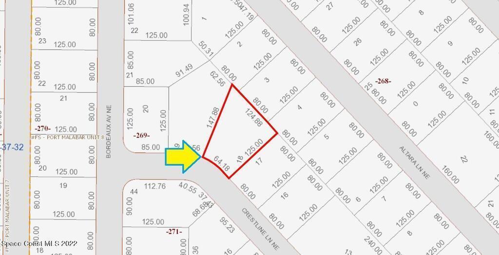 0.30 acre buildable residential lot available in Port Malabar Unit 8 of Palm Bay. Located in the northeast section, this lot has city water available and is just 1 mile - 4 minutes to the Walmart Supercenter, 2.1 miles - 6 minutes to Turner Elementary School, 10.2 miles - 24 minutes to Melbourne Airport, and 11.3 miles - 32 minutes to the beaches of Indialantic. From exit #173 of I-95 go west on Malabar Road for .8 miles, right on Emerson Drive for .1 mile, left on Fairhaven Street for .1 mile, right on Biltmore Avenue for .2 miles, and left on Crestline Lane. The lot will be on your right.