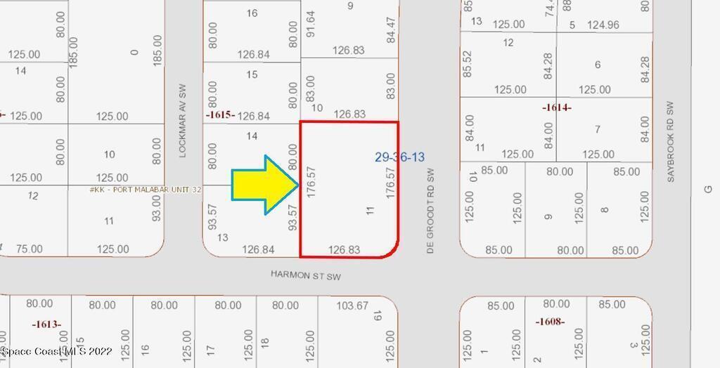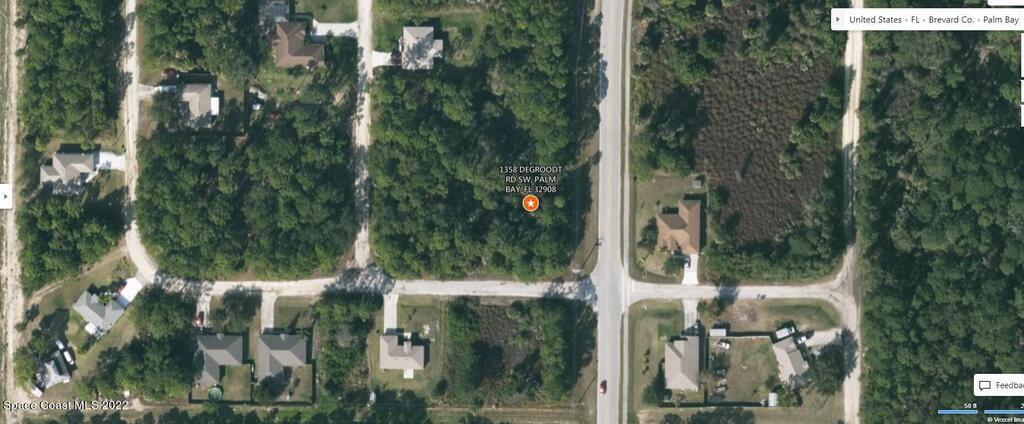 0.51 acre buildable residential corner lot available in Port Malabar Unit 32 of Palm Bay. Located in the southwest section, this lot has city water available and is just 1.1 miles - 2 minutes to Bayside High School, 2.4 miles - 5 minutes to the Publix Supermarket, 12.1 miles - 26 minutes to Melbourne Airport, and 14.9 miles - 32 minutes to the beaches of Indialantic. From exit #176 of I-95 go west on Palm Bay Road for .7 miles, left on Minton Road for 3.3 miles, right on Jupiter Boulevard for .1 mile, and left on DeGroodt Road. The lot will be on your right in 1.6 miles.